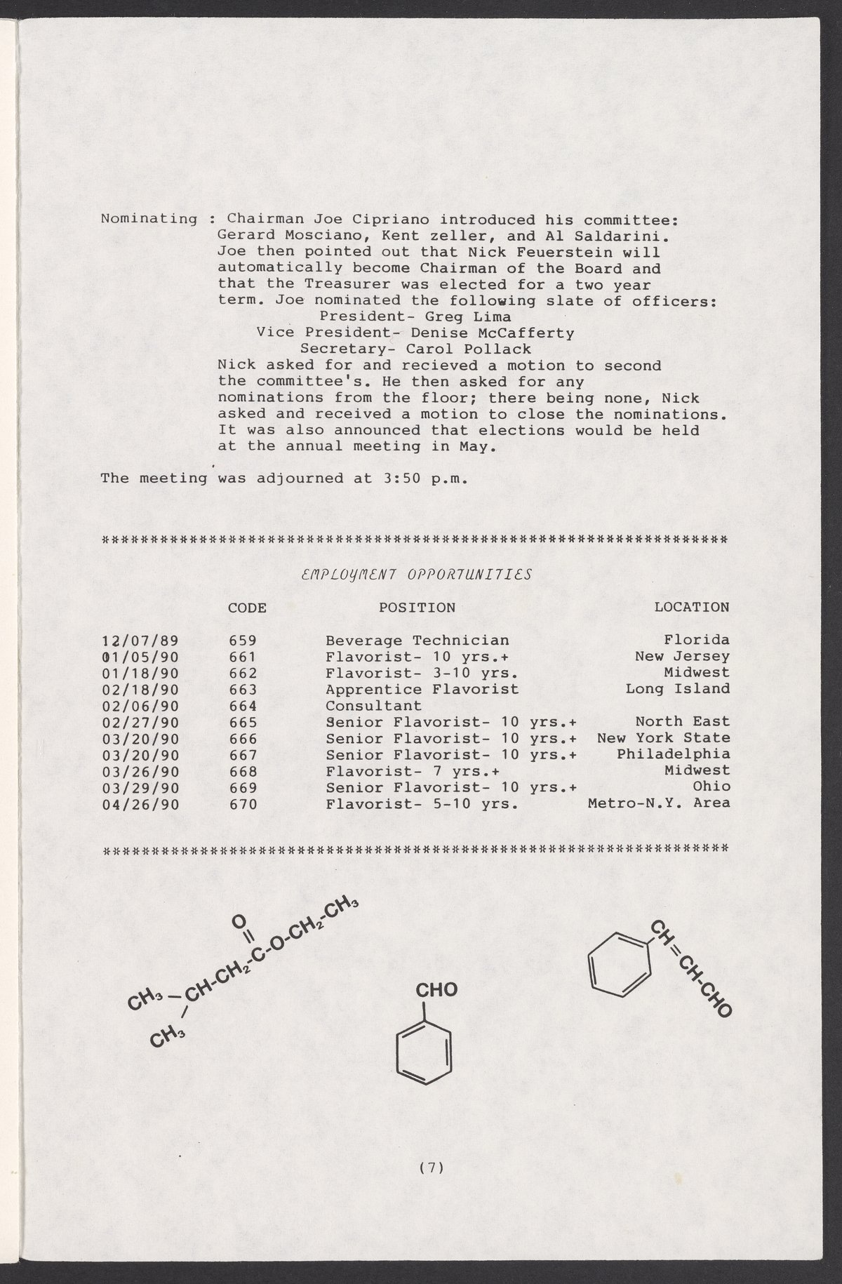 Society of Flavor Chemists. “Society of Flavor Chemists Newsletter, September 1990,” September 1, 1990. Society of Flavor Chemists Newsletters , Box 1, Folder 1. Science History Institute. Philadelphia. https://digital.sciencehistory.org/works/akm4re4.