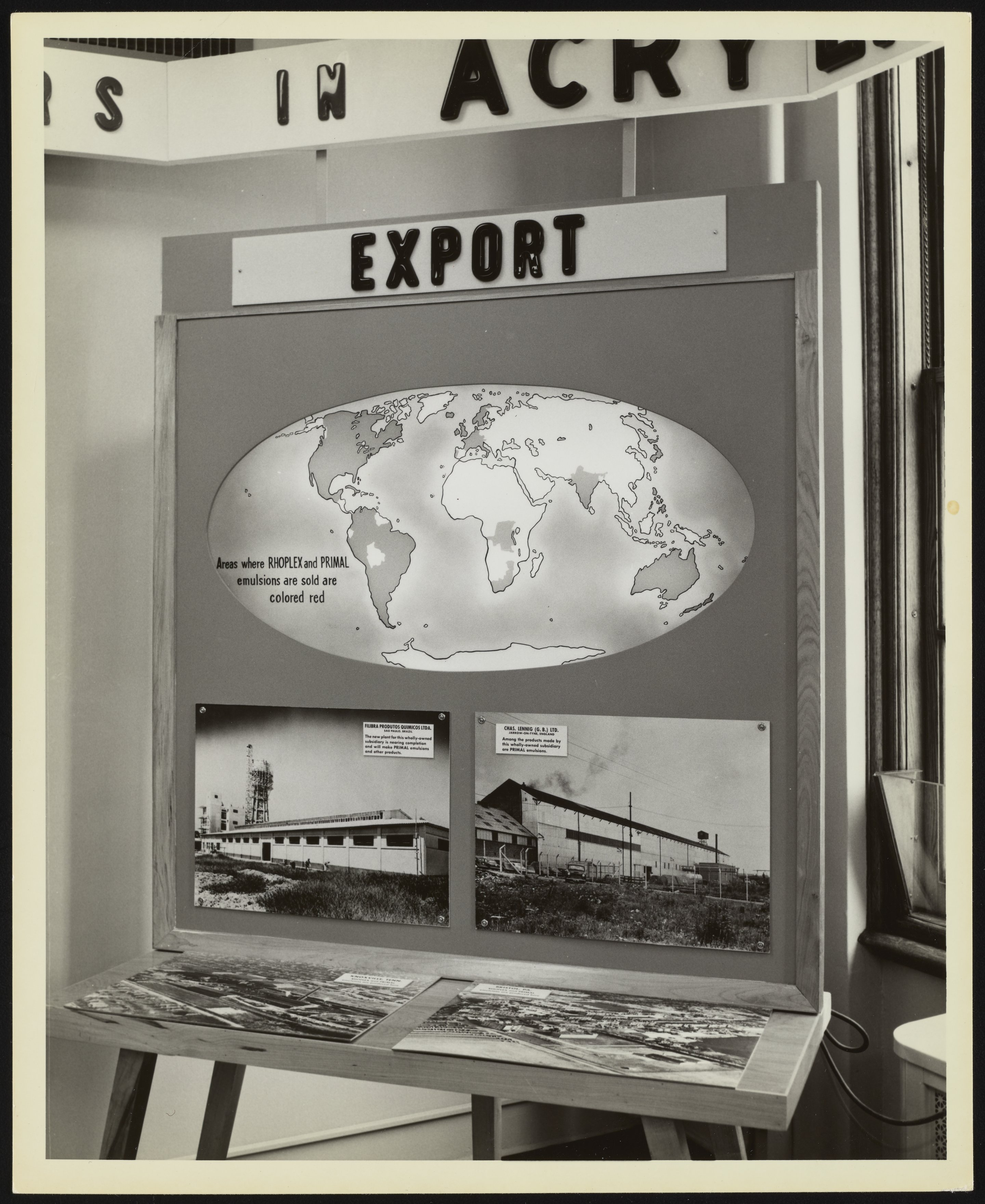 Rhoplex and Primal emulsions exports exhibit board