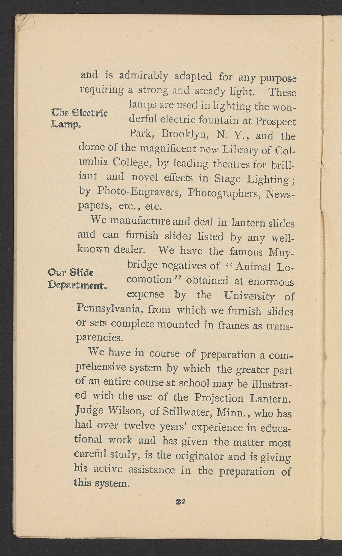 Small JPG1200 x 1970px — 630 KBFull-sized JPG1571 x 2579px — 1.0 MBOriginal fileTIFF — 1571 x 2579px — 11.6 MBPublished by J.B. Colt Company, a New York-based producer of lamps and acetylene products, this small volume is dedicated to marketing the use of acetylene gas in artificial lighting. The work posits the acetylene lamp as the "latest and greatest product of light-science [which] goes a long step beyond electricity." The work includes information about the history and sourcing of acetylene, a description of acetylene's scientific properties, and a listing of the uses and applications of acetylene lamps. The work concludes with a brief section about other products offered by J.B. Colt & Company and an illustration of the "Criterion" Automatic Acetylene Gas Generator.