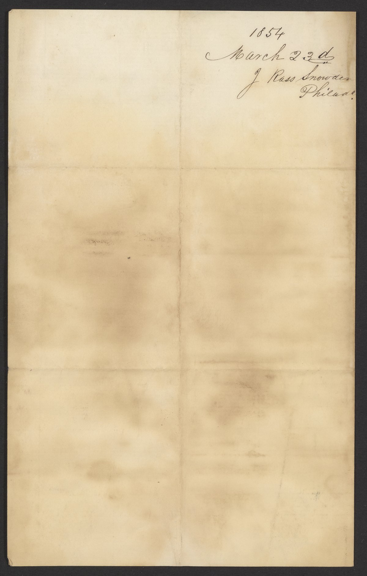 Letter from J. Ross Snowden to James Curtis Booth, March 23, 1854