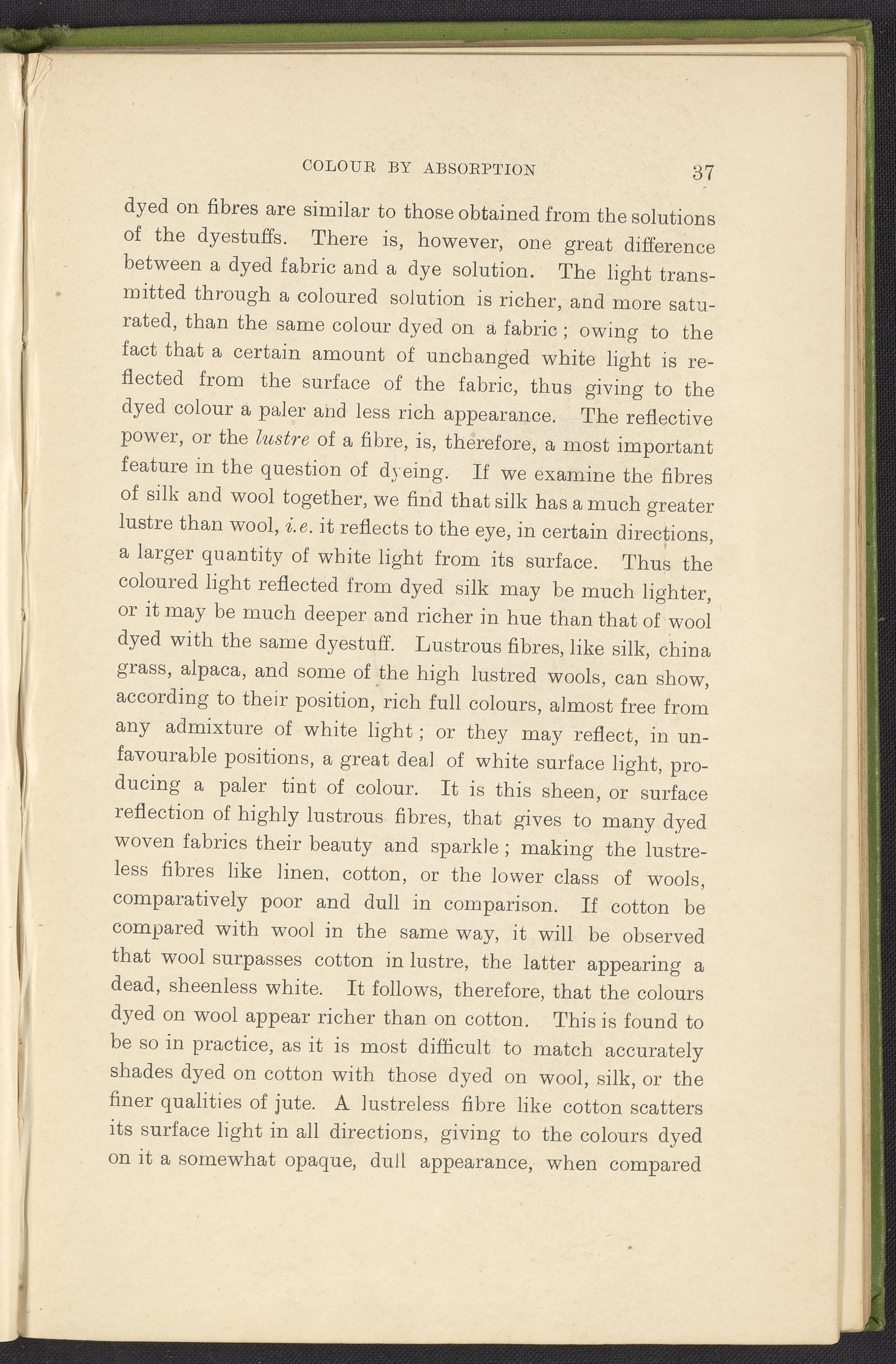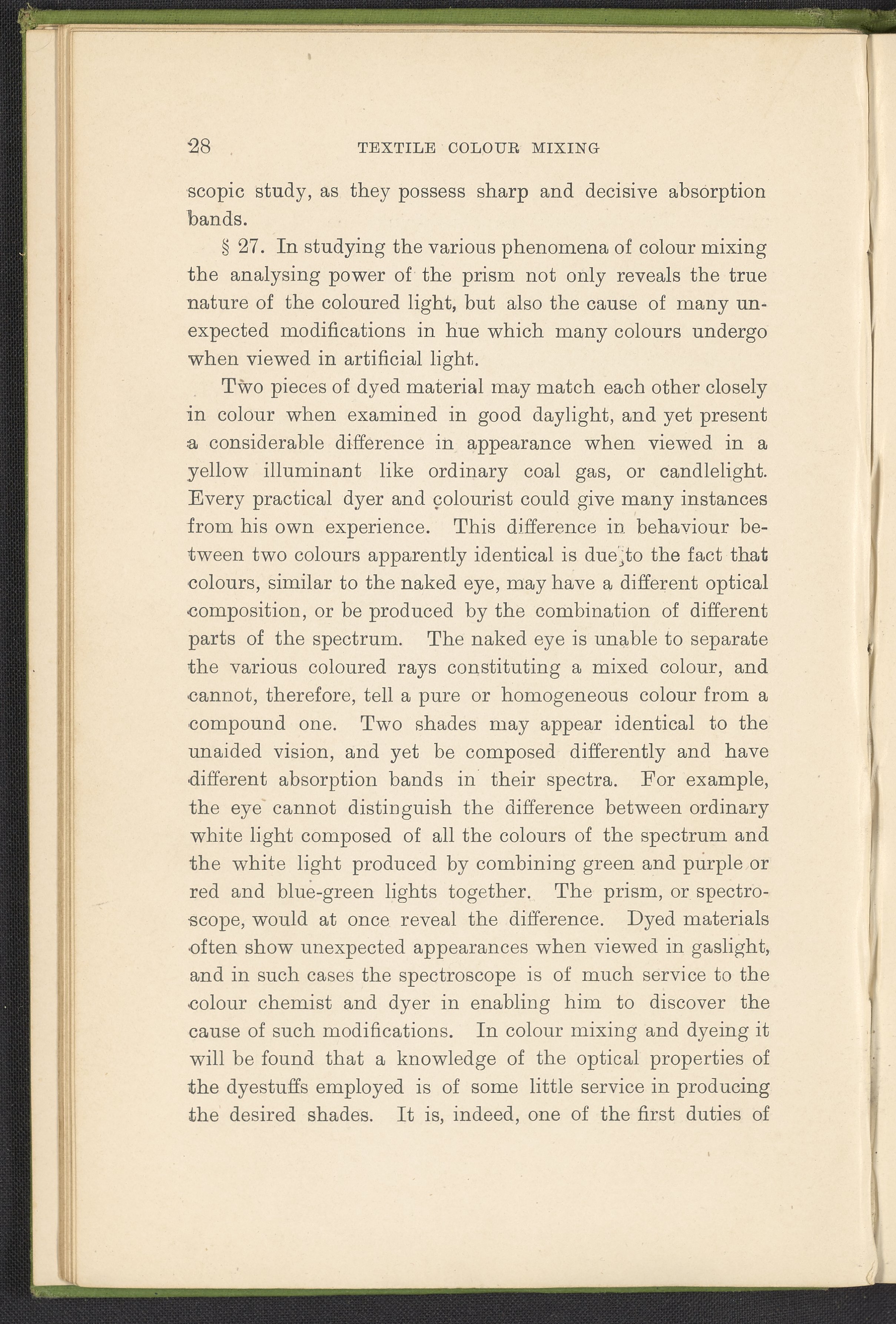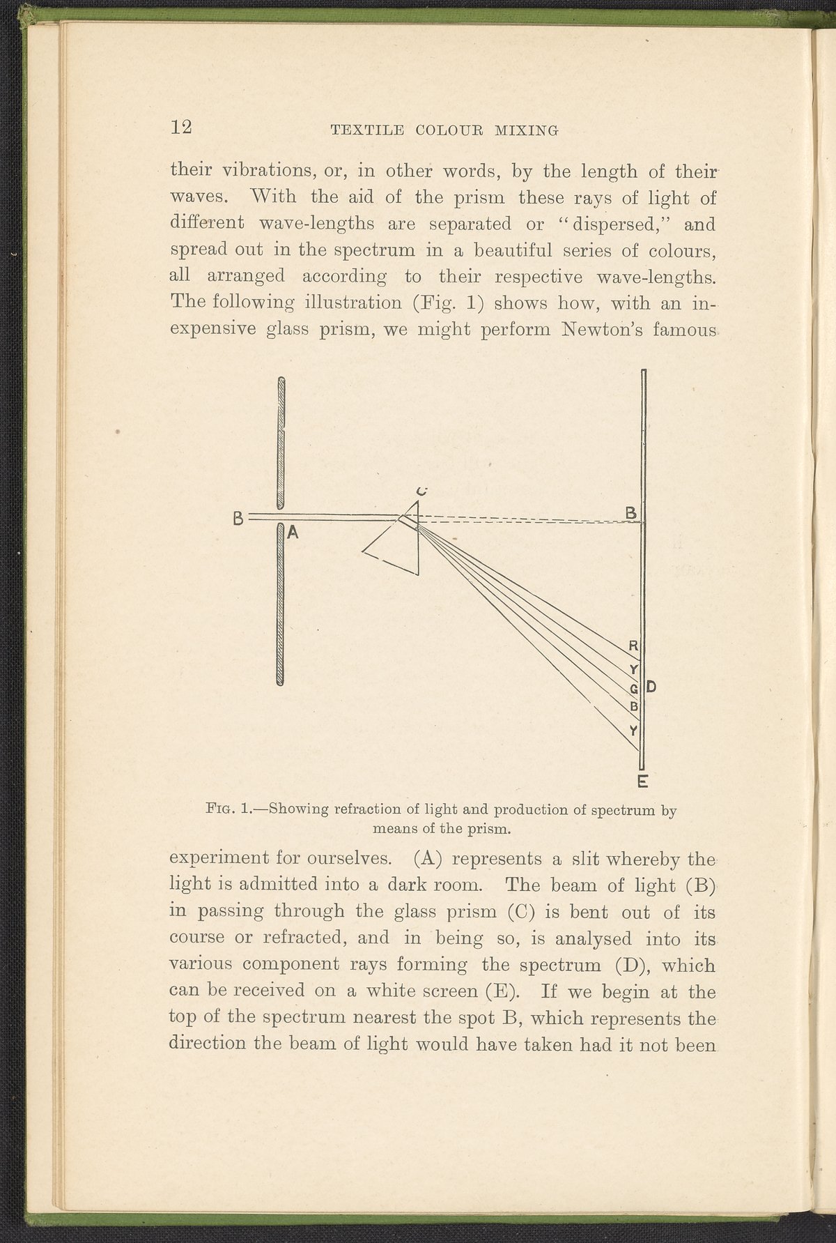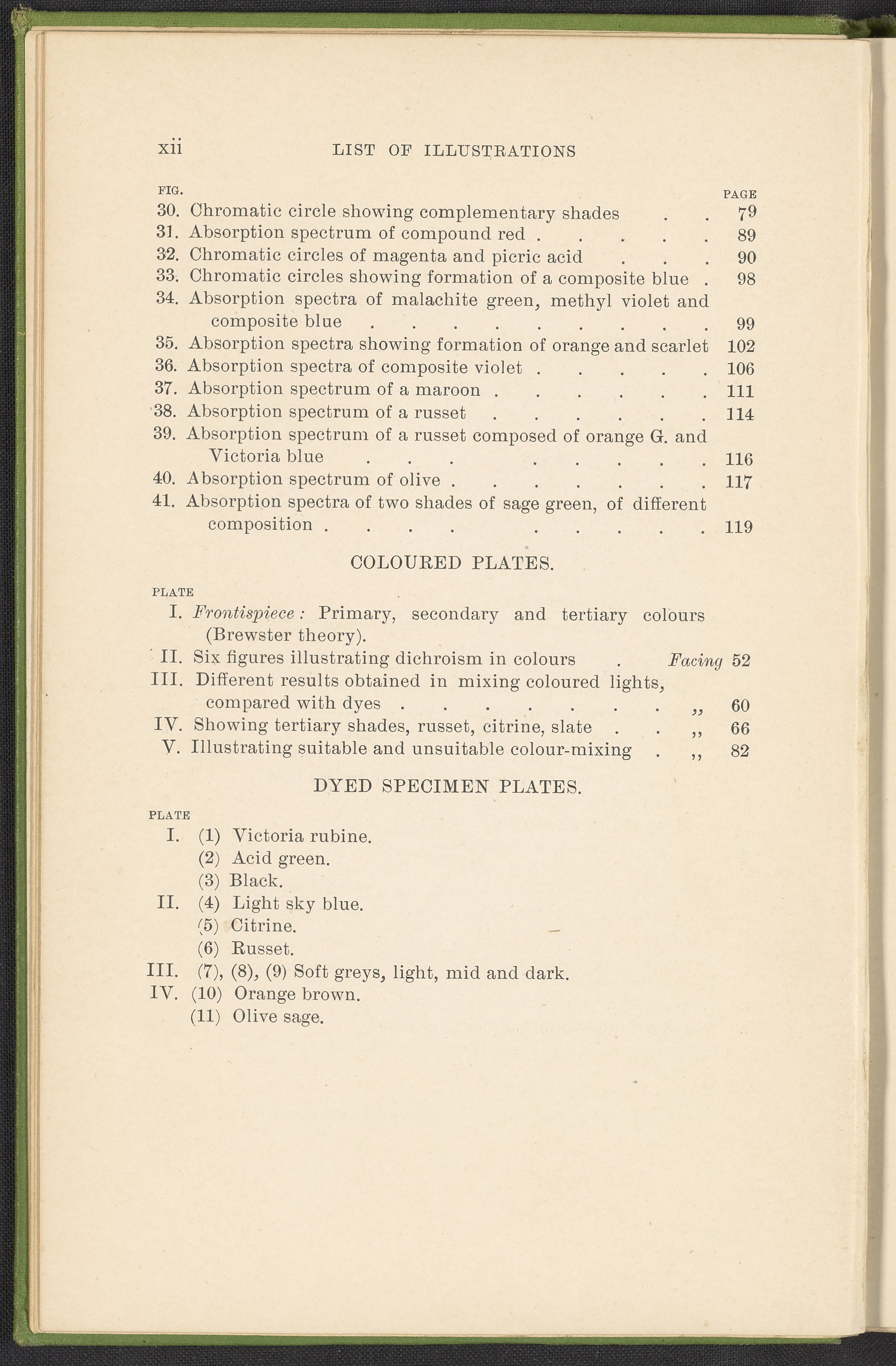 Small JPG1200 x 1784px — 330 KBFull-sized JPG2446 x 3636px — 1.2 MBOriginal fileTIFF — 2446 x 3636px — 25.5 MBA second revised edition of a text on color science. According to the author in his preface, this work deals “in a practical manner with the science of mixing ordinary colours and dyes… thus made applicable to the common everyday duties of the dyer and the colourist.” The work was written to complement the coursework of students enrolled in Textile Colleges as well as to provide technical context for color professionals. Contents include absorption spectroscopy, light waves and analysis, color mixing, primary colors, secondary colors, and tertiary shades. Includes five colored plates, four plates with dye samples, and 40 figures and illustrations. Work is digitized in its entirety.