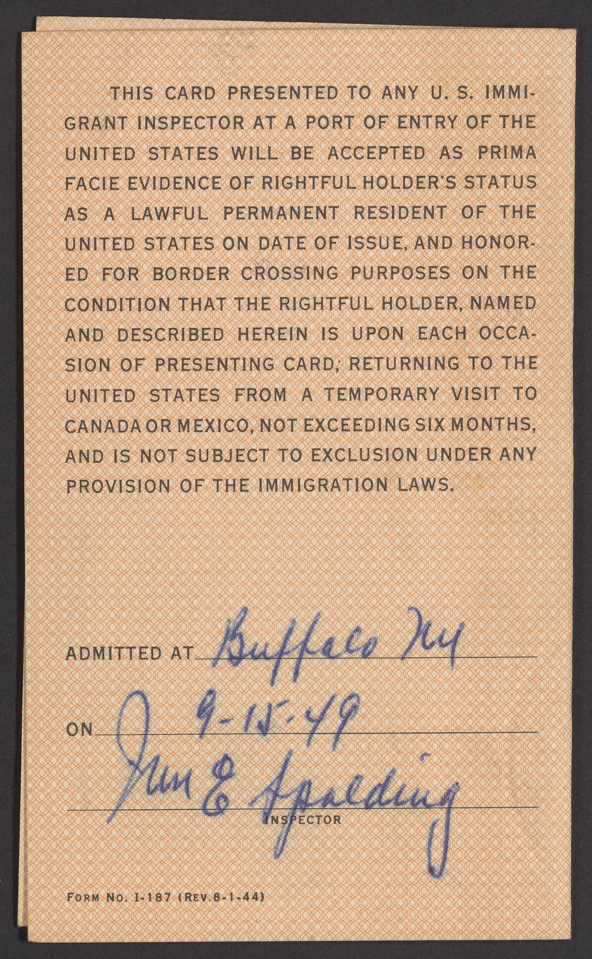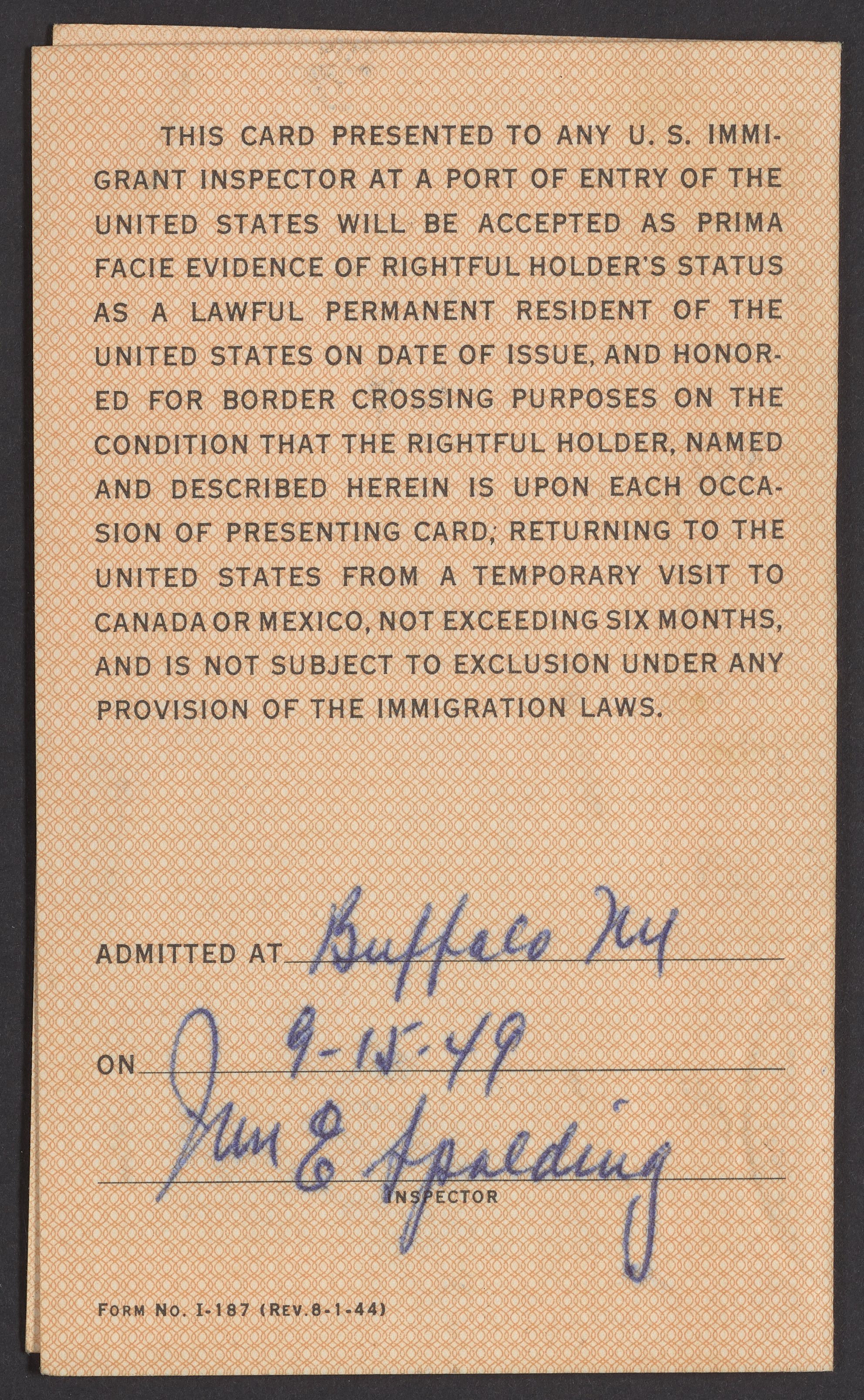 Gabor B. Levy's United States Resident Alien's Border Crossing Identification Card