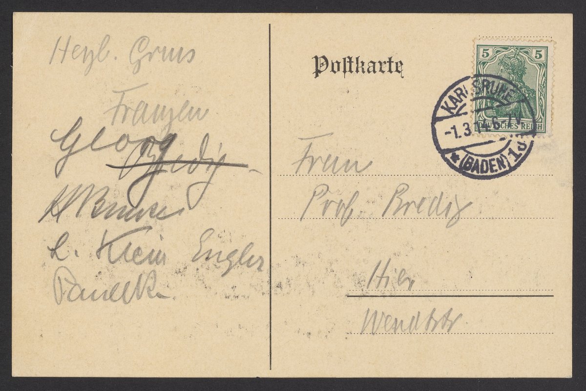 Postcard from Georg Bredig and Colleagues to Rosa Bredig