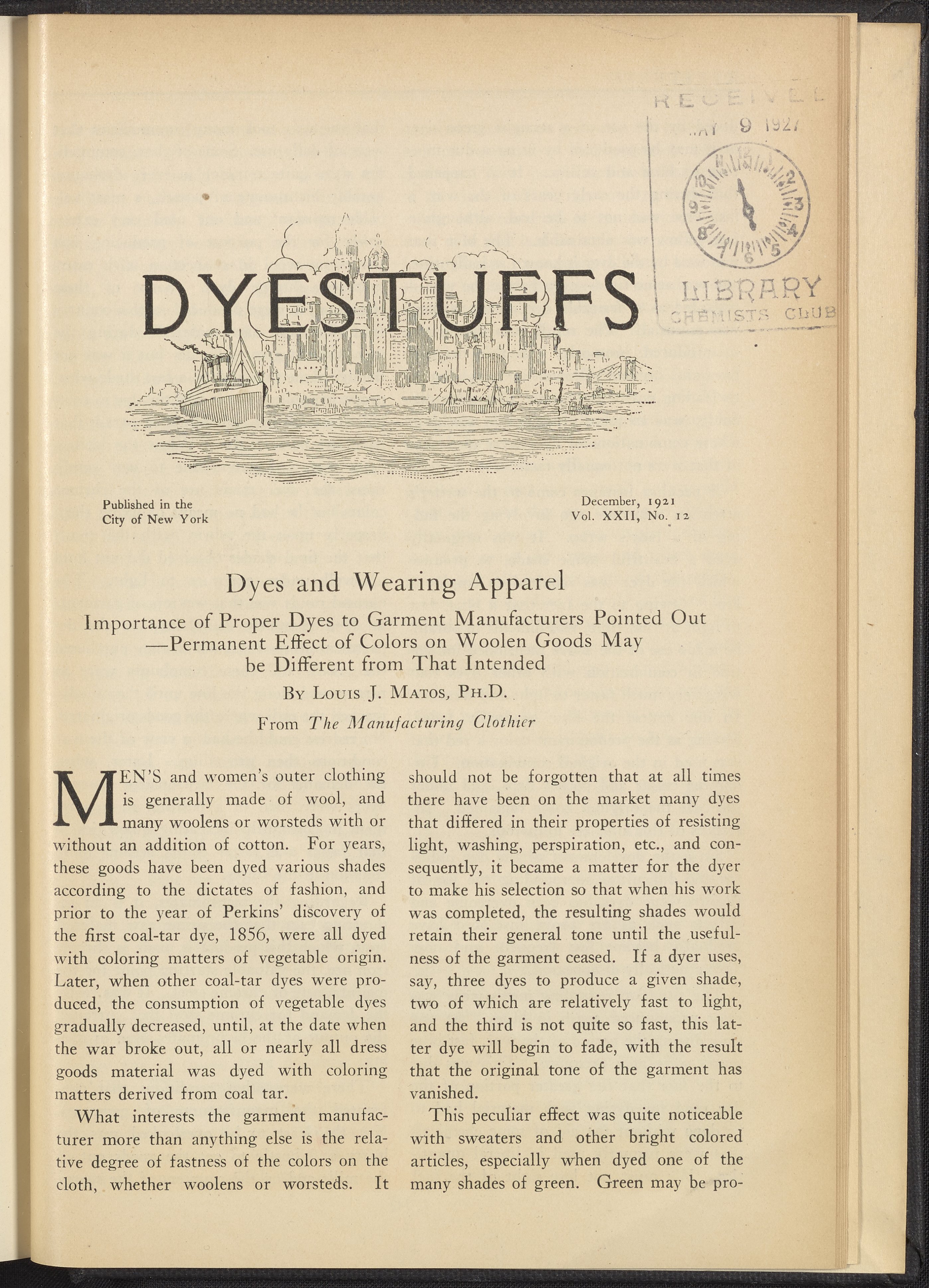 Dyestuffs, Volume 22 Number 12