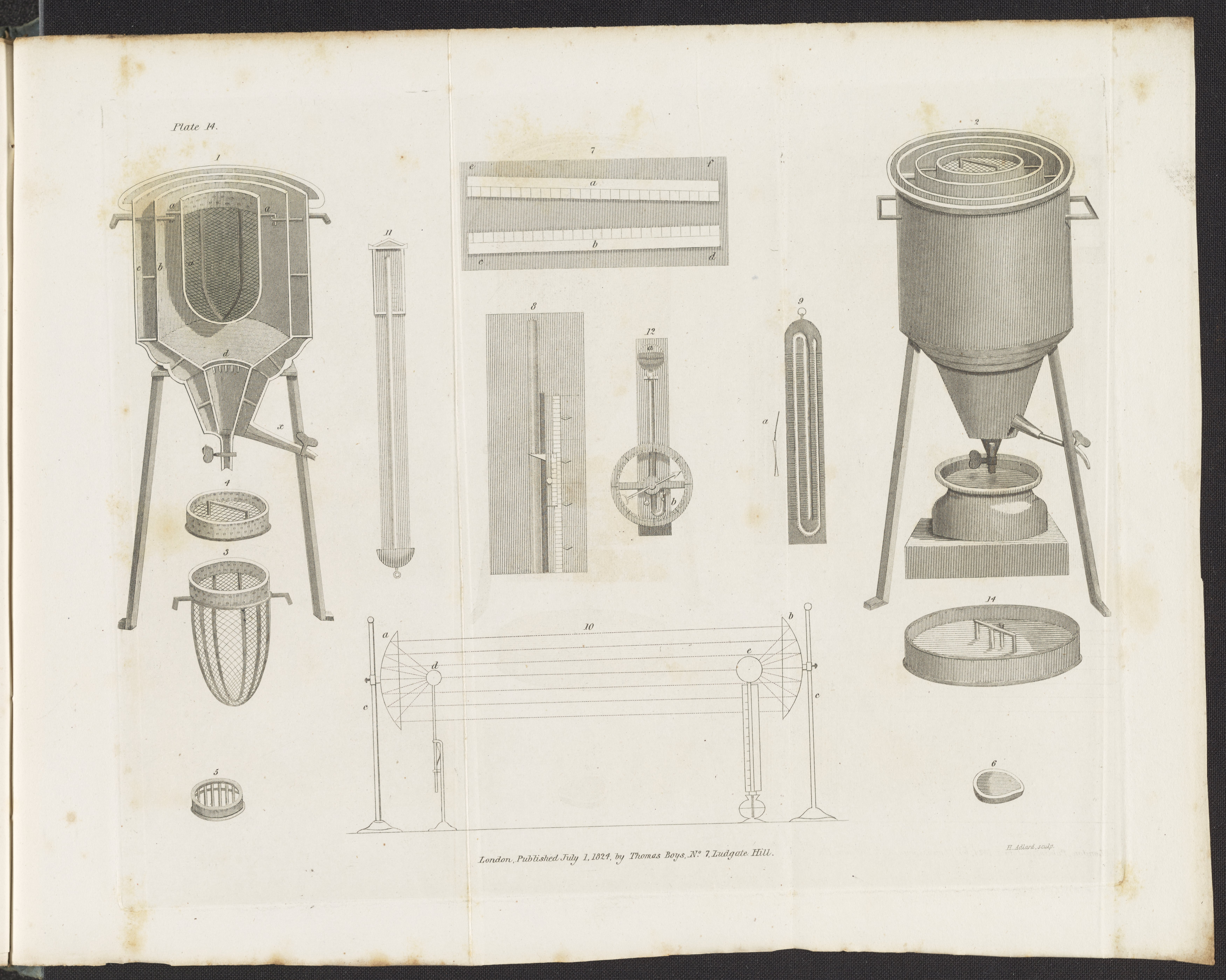 Accum, Friedrich Christian. “Plate 14: Calorimeter; Pyrometer; Reflectors; Barometers.” In An Explanatory Dictionary of the Apparatus and Instruments Employed in the Various Operations of Philosophical and Experimental Chemistry. London, England: Thomas Shotter Boys, 1824. https://digital.sciencehistory.org/works/b2773v73c.