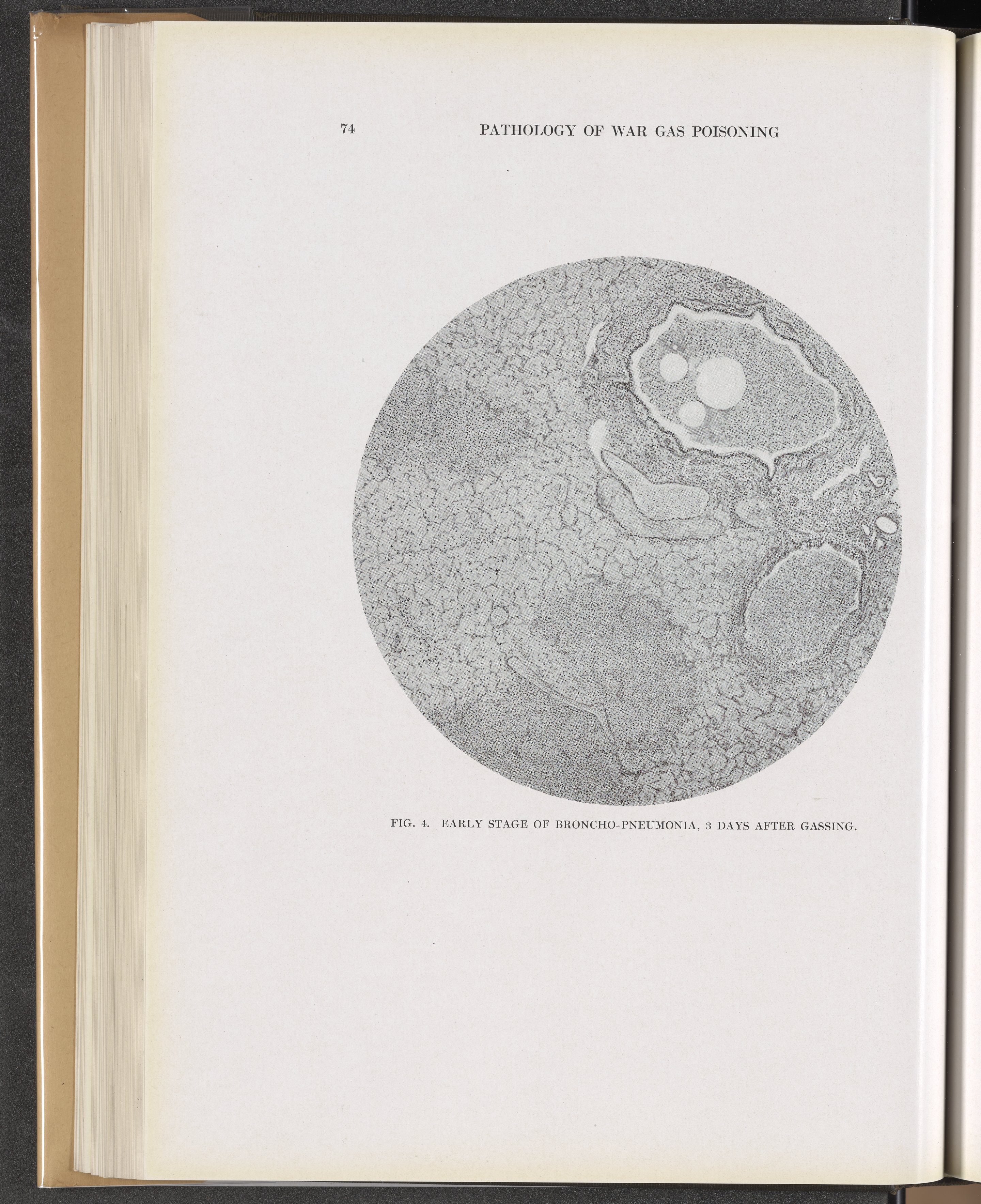 Winternitz, M. C. (Milton C.). “Fig. 4: Early Stage of Broncho-Pneumonia, 3 Days after Gassing.” Collected Studies on the Pathology of War Gas Poisoning. New Haven, Connecticut: Yale University Press, 1920. https://digital.sciencehistory.org/works/b2773v855.