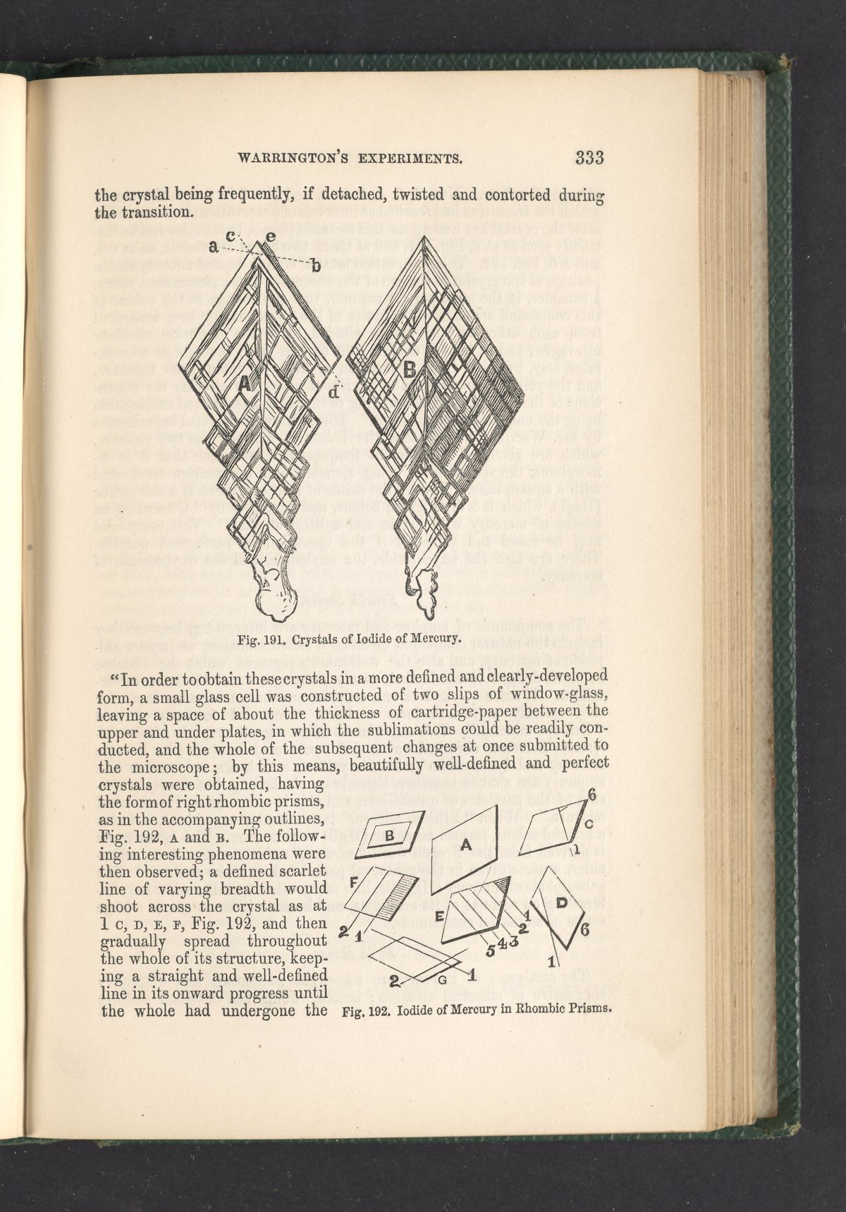 Pepper, John Henry. “Figure 191. Crystals of Iodide of Mercury.” The Playbook of Metals : Including Personal Narratives of Visits to Coal, Lead, Copper, and Tin Mines; with a Large Number of Interesting Experiments Relating to Alchemy and the Chemistry of Fifty Metallic Elements. London, England, 1862. https://digital.sciencehistory.org/works/b4qj5kg.