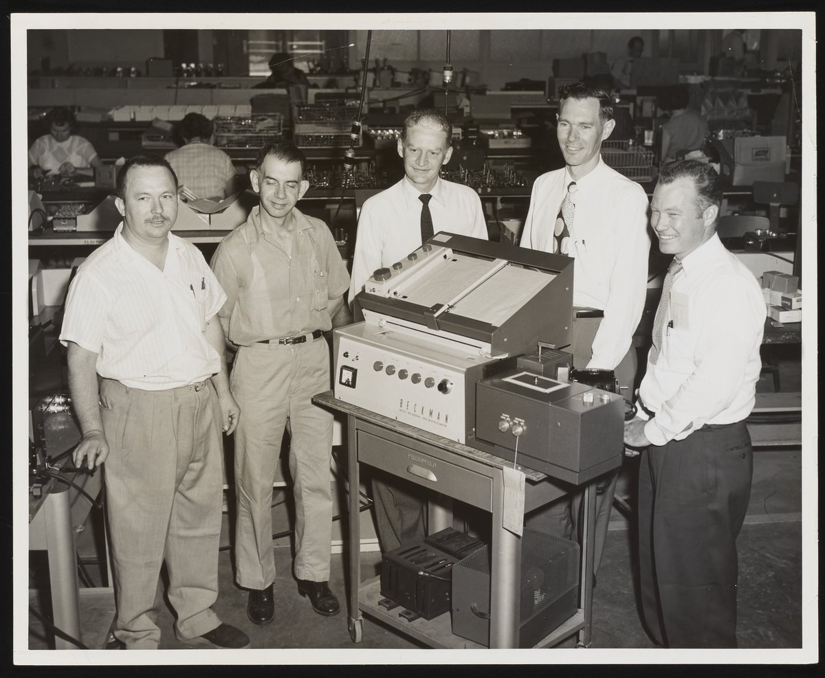 Dietrich, T. A. “Unidentified Men with Beckman Ratio Recording Spectrophotometer,” circa 1966. Beckman Historical Collection, Box 55, Folder 63. Science History Institute. Philadelphia. https://digital.sciencehistory.org/works/b5644r55p.