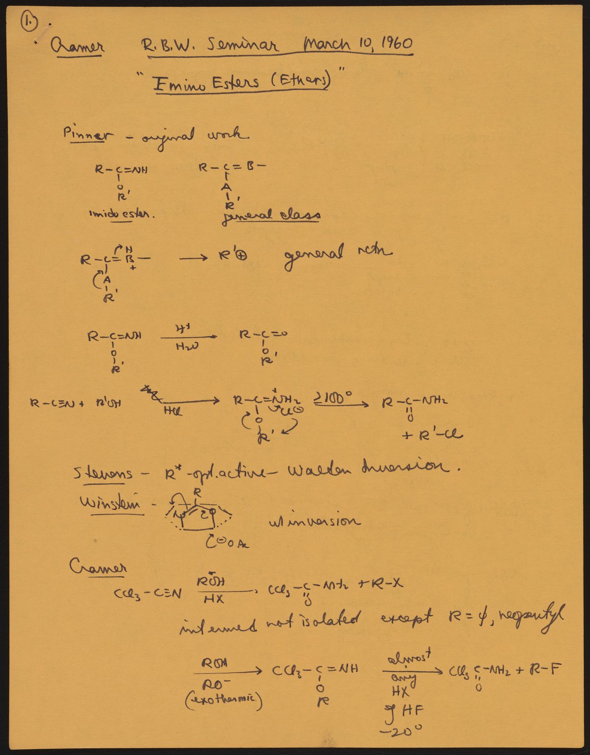 R. B. (Robert Burns) Woodward Seminar entitled "Amino Esters (Ethers)"