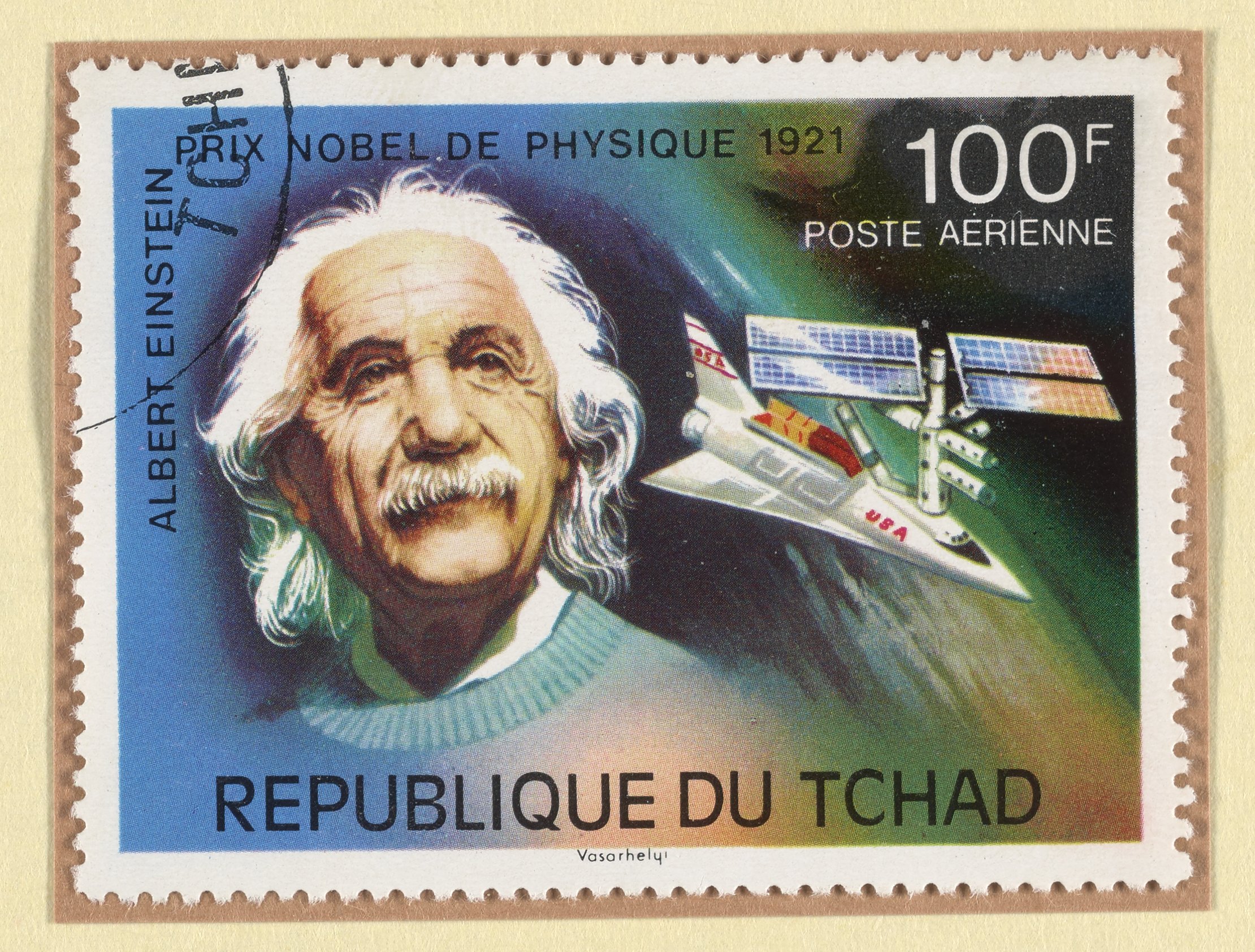 Vásárhelyi, Gyula László. “Chadian Postage Stamp Commemorating Albert Einstein.” Chad, 1976. Witco Stamp Collection, Box 2. Science History Institute. Philadelphia. https://digital.sciencehistory.org/works/b8515n409.
