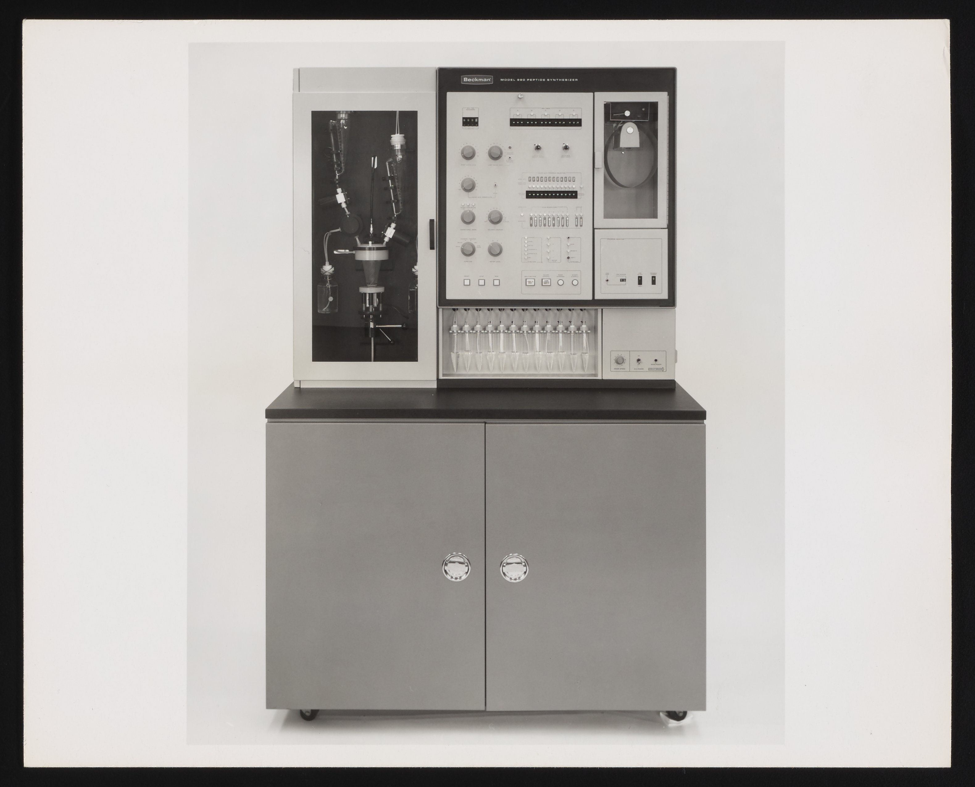 “Beckman Model 990 Peptide Synthesizer,” n.d. Beckman Historical Collection, Box 78. Science History Institute. Philadelphia. https://digital.sciencehistory.org/works/b8515n44d.