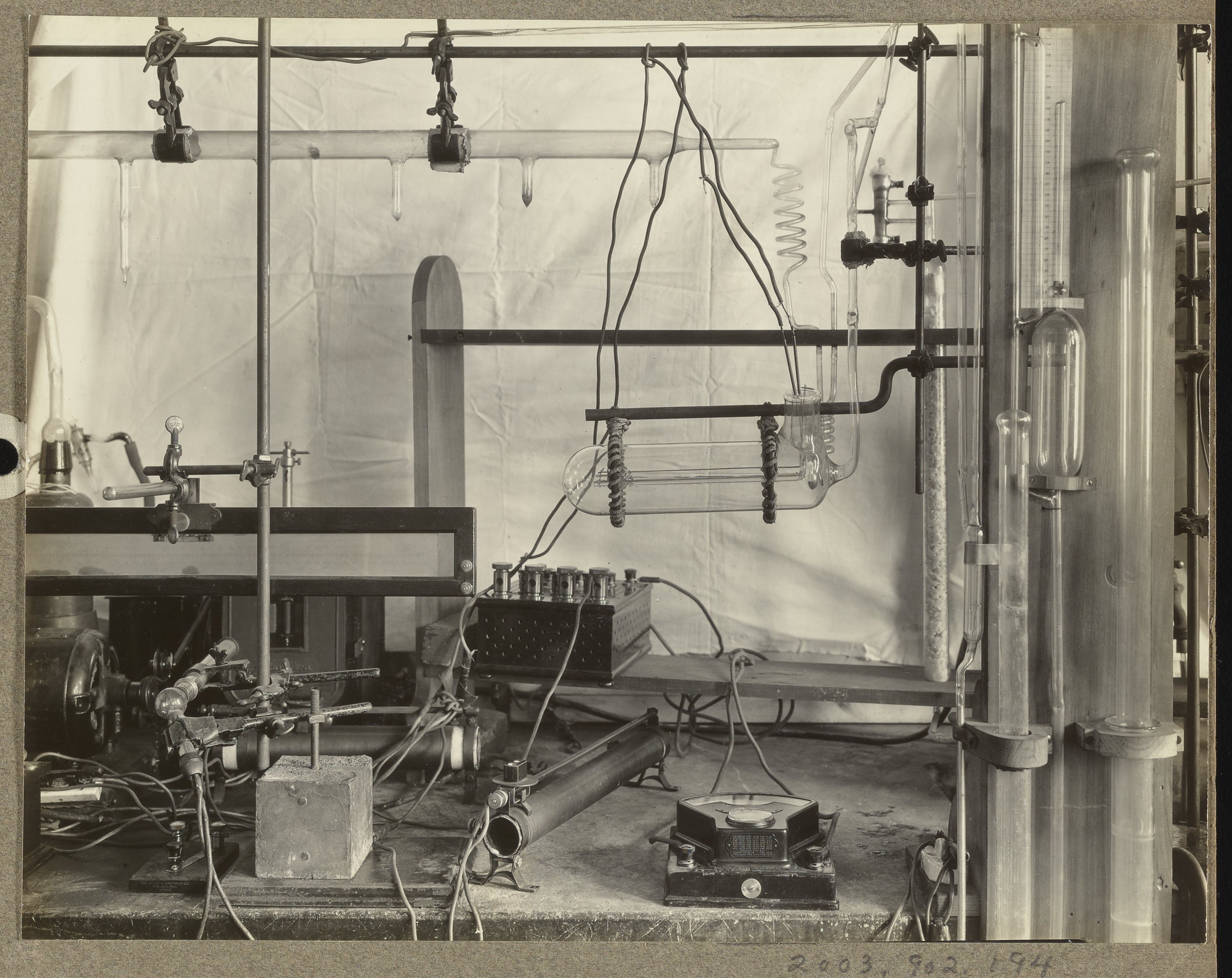 “Apparatus for Studying the Decomposition of Ammonia,” circa 1927. Travis P. Hignett Collection of Fixed Nitrogen Research Laboratory Photographs, Box 2. Science History Institute. Philadelphia. https://digital.sciencehistory.org/works/b8515n46z.