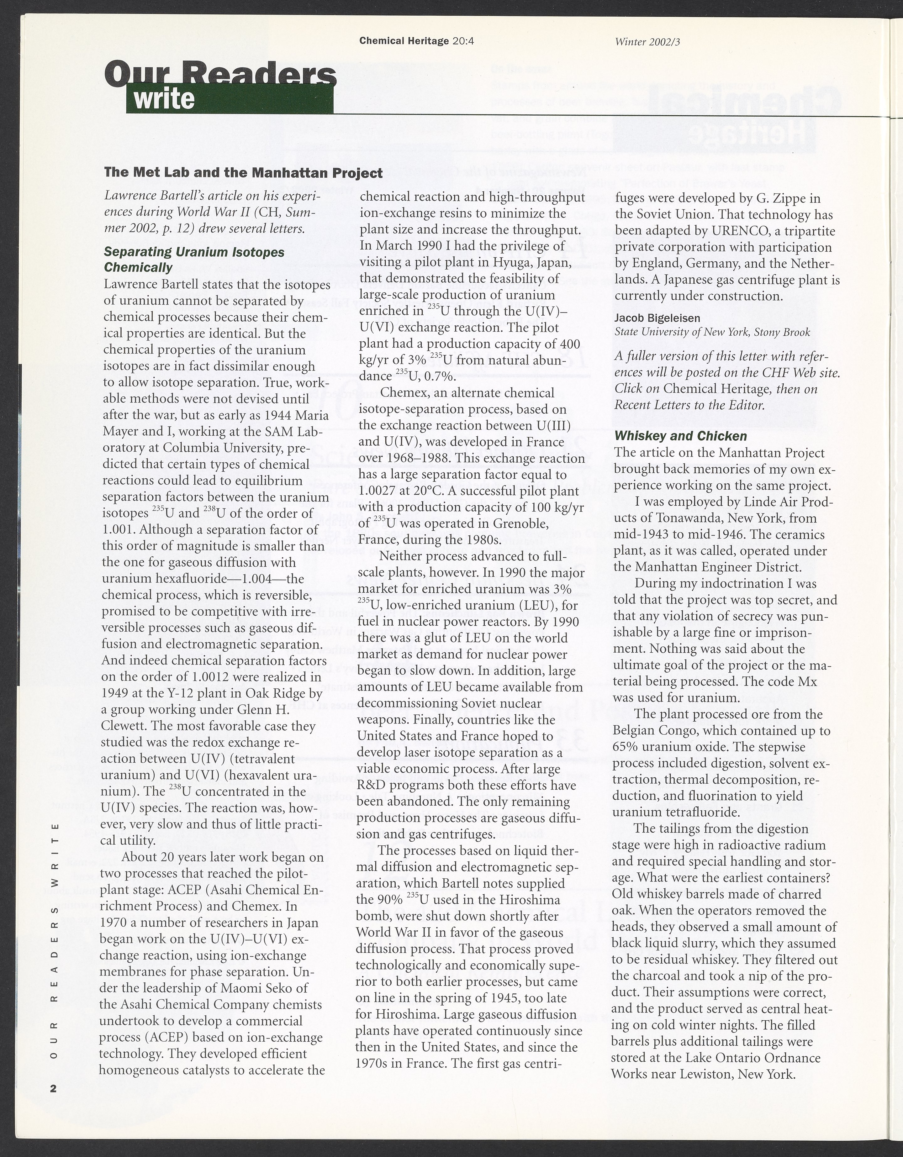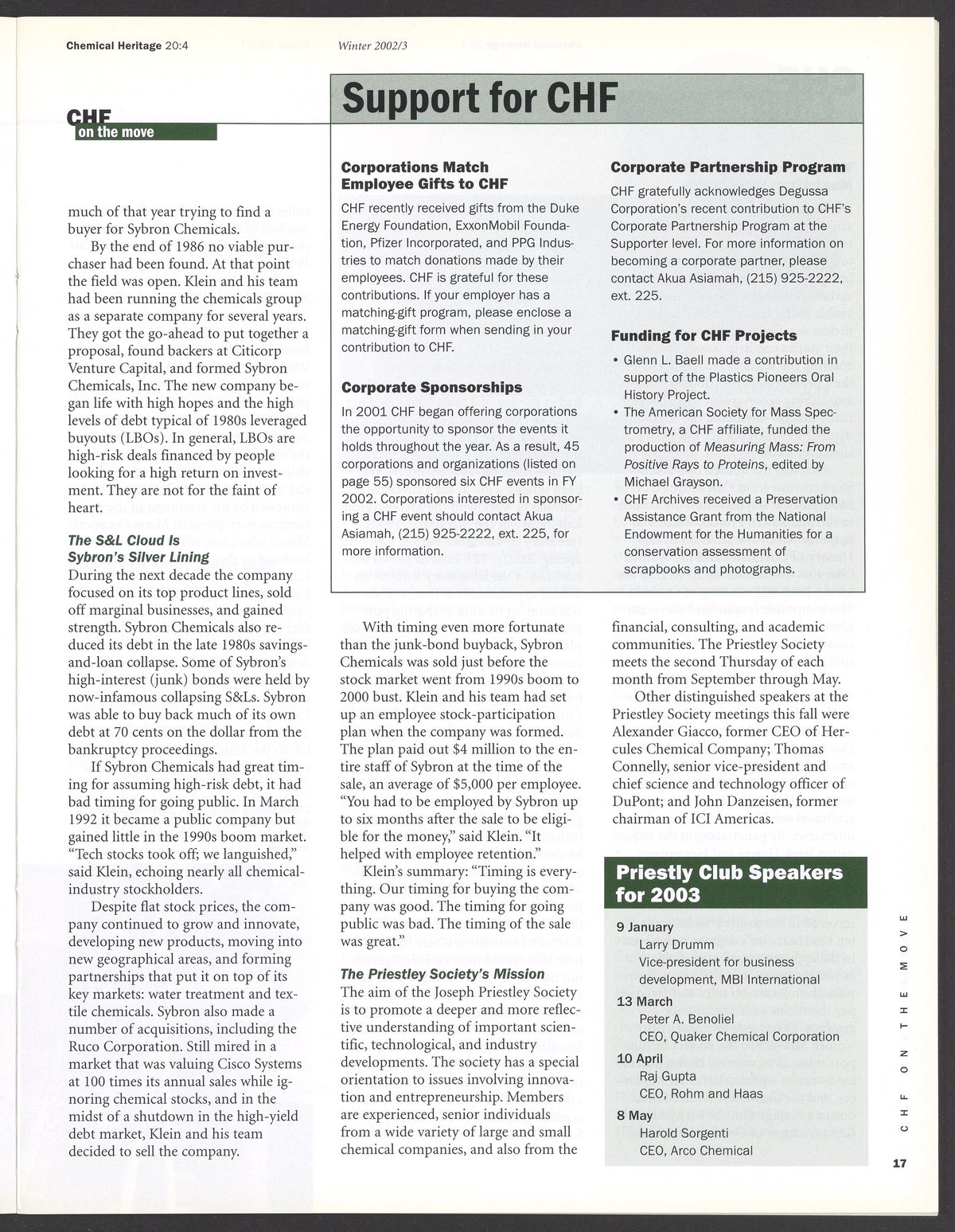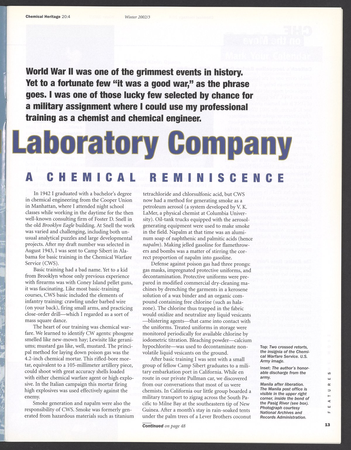 Chemical Heritage, Volume 20 Number 4