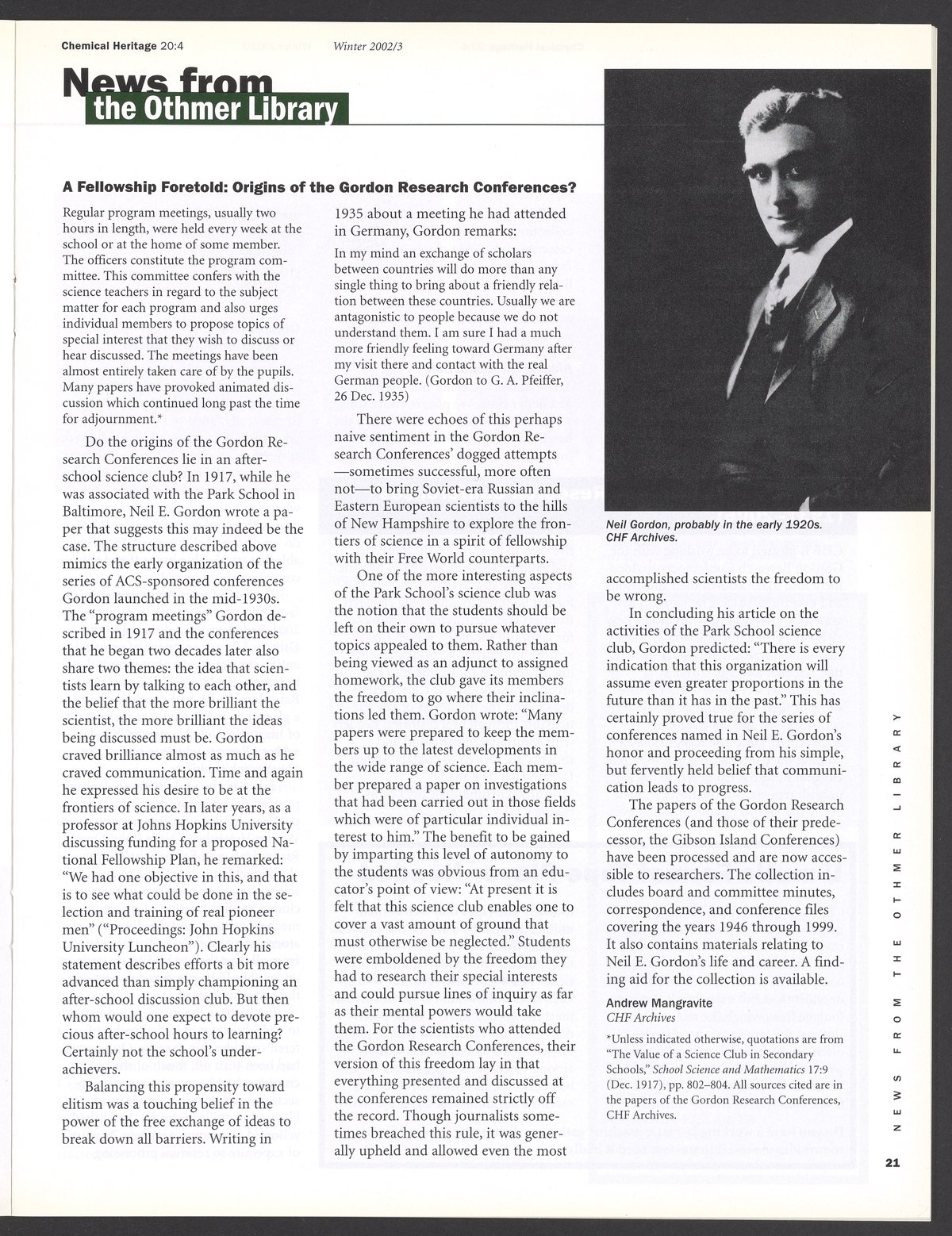 “Chemical Heritage, Volume 20 Number 4.” Philadelphia, Pennsylvania: Chemical Heritage Foundation, 2002. 099C001. Science History Institute. Philadelphia. https://digital.sciencehistory.org/works/bdj336e.