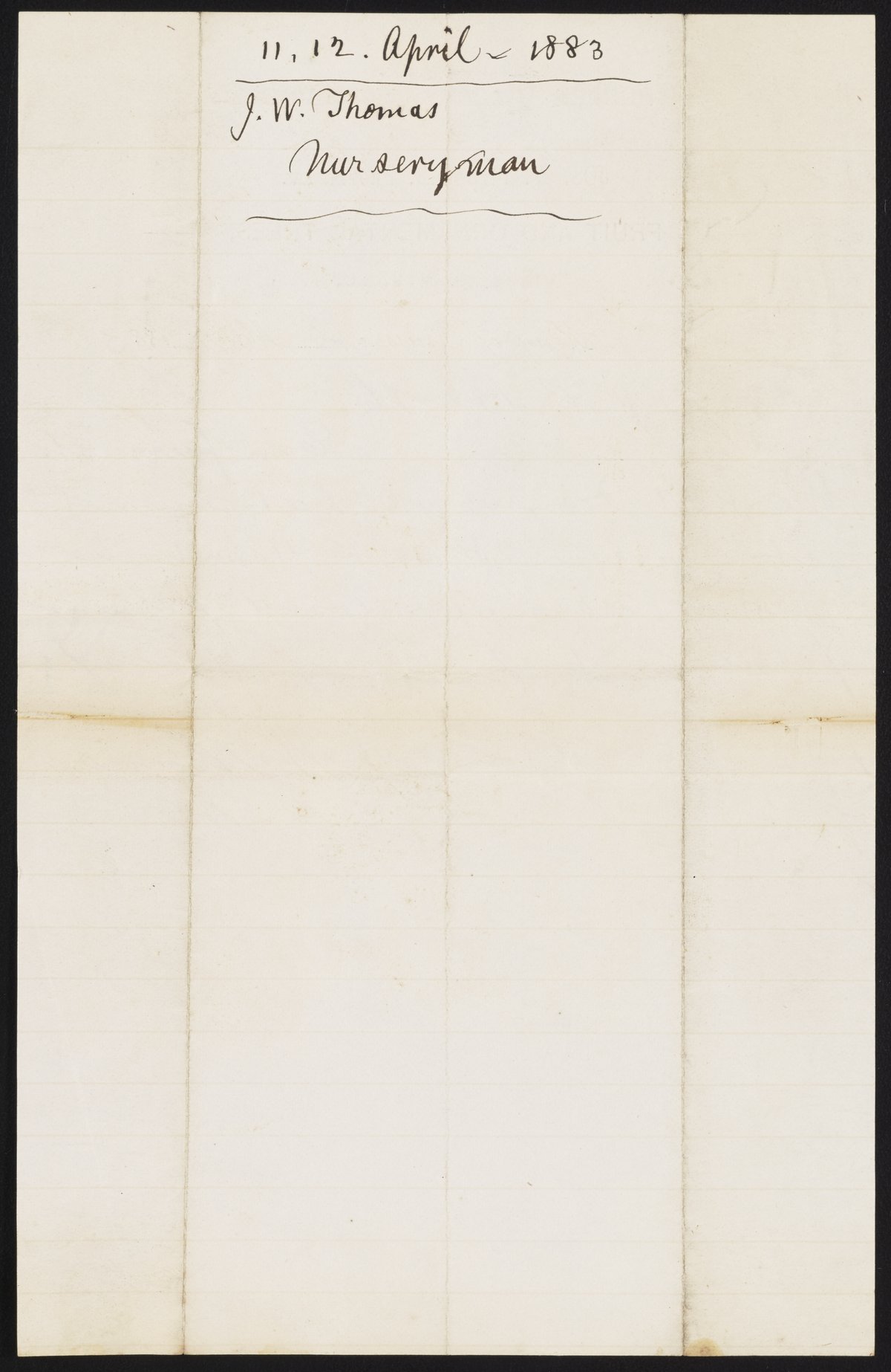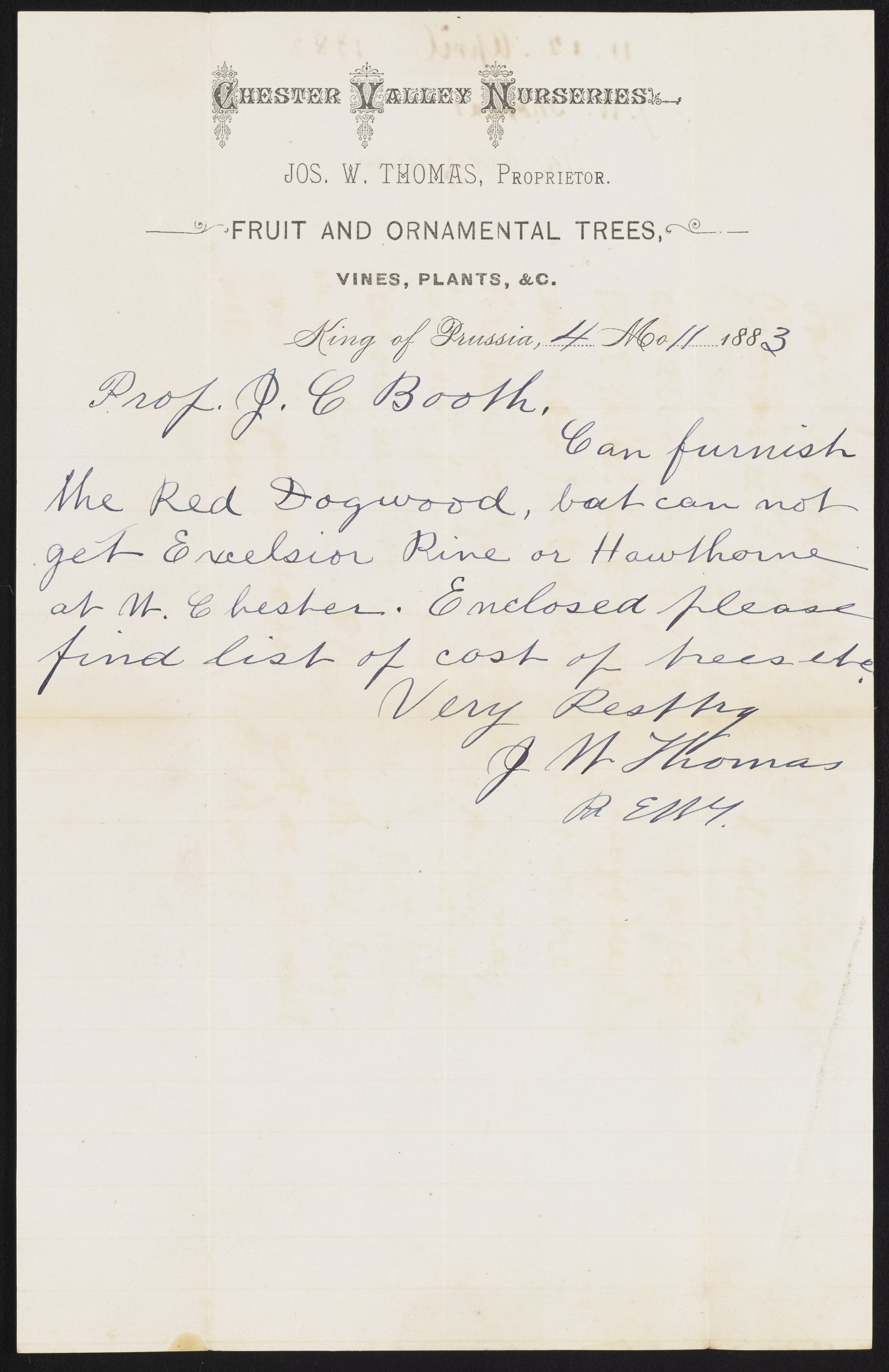 Letter from J.W. Thomas to James Curtis Booth, April 11, 1883