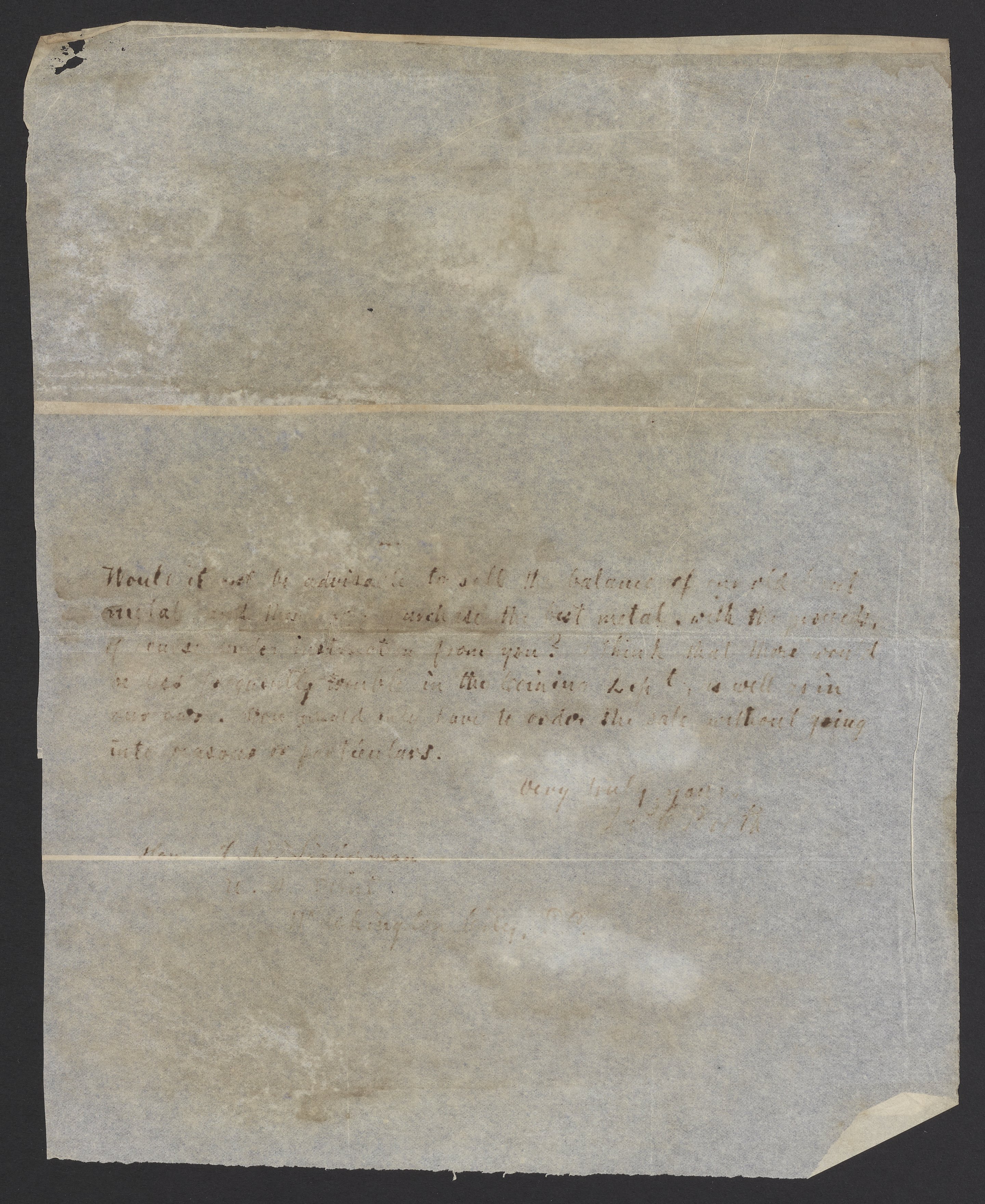 Booth, James Curtis. “Letter from James Curtis Booth to an Unidentified Recipient,” circa 1875. Papers of James Curtis Booth, Box 2, Folder 5. Science History Institute. Philadelphia. https://digital.sciencehistory.org/works/bjjkf16.