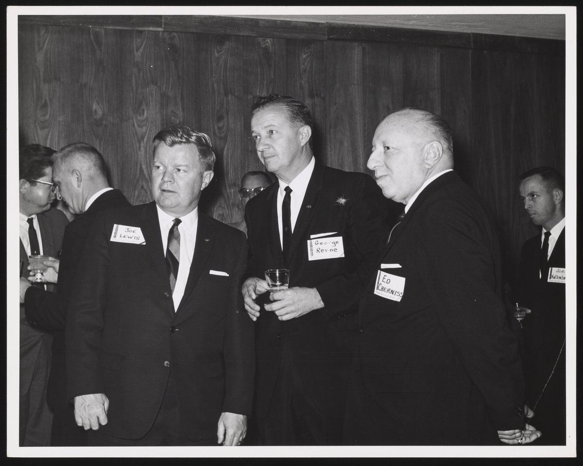 “Joe Lewis, George Renne, and Ed Cherniss at International Information Meeting,” 1965. Beckman Historical Collection, Box 55, Folder 171. Science History Institute. Philadelphia. https://digital.sciencehistory.org/works/bk128999s.