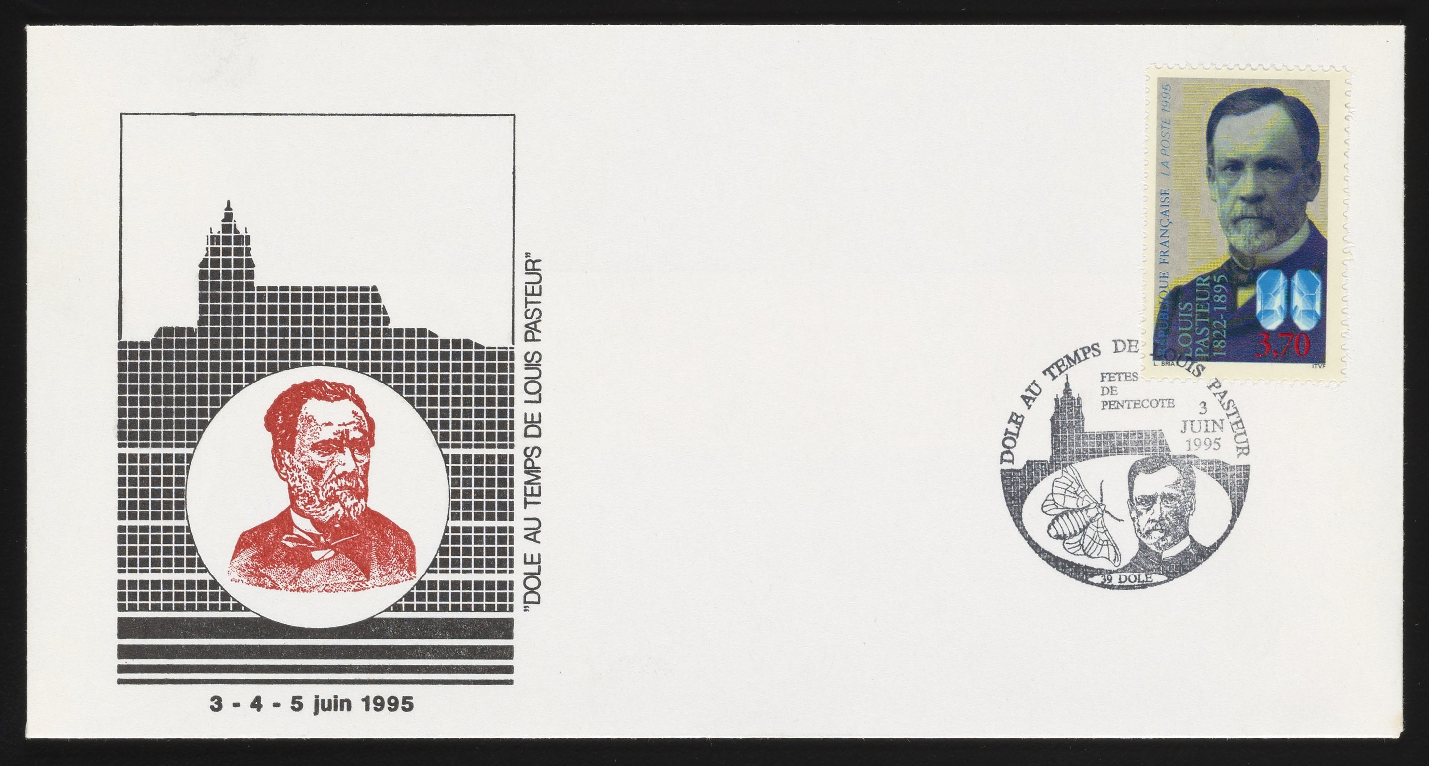 Briat, Louis. “First Day Cover Commemorating Louis Pasteur.” France, June 3, 1995. Fisher-Pasteur Memorial Collection, Box 1, Folder 24. Science History Institute. Philadelphia. https://digital.sciencehistory.org/works/bk128b00b.