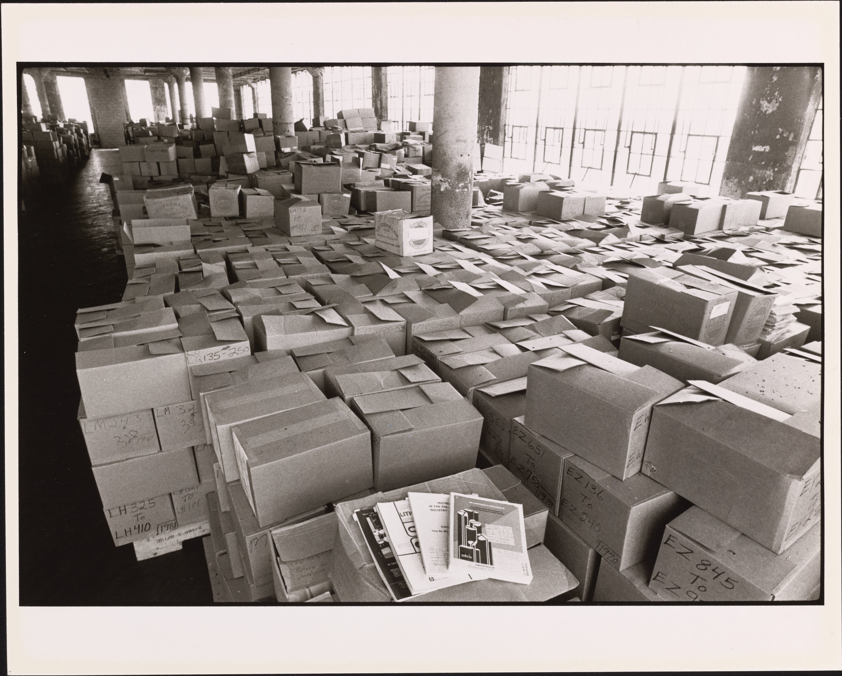 Benson, Neil. “Institute for Scientific Information Warehouse,” circa 1981. Eugene Garfield Papers, Box 124. Science History Institute. Philadelphia. https://digital.sciencehistory.org/works/bkj19n4.