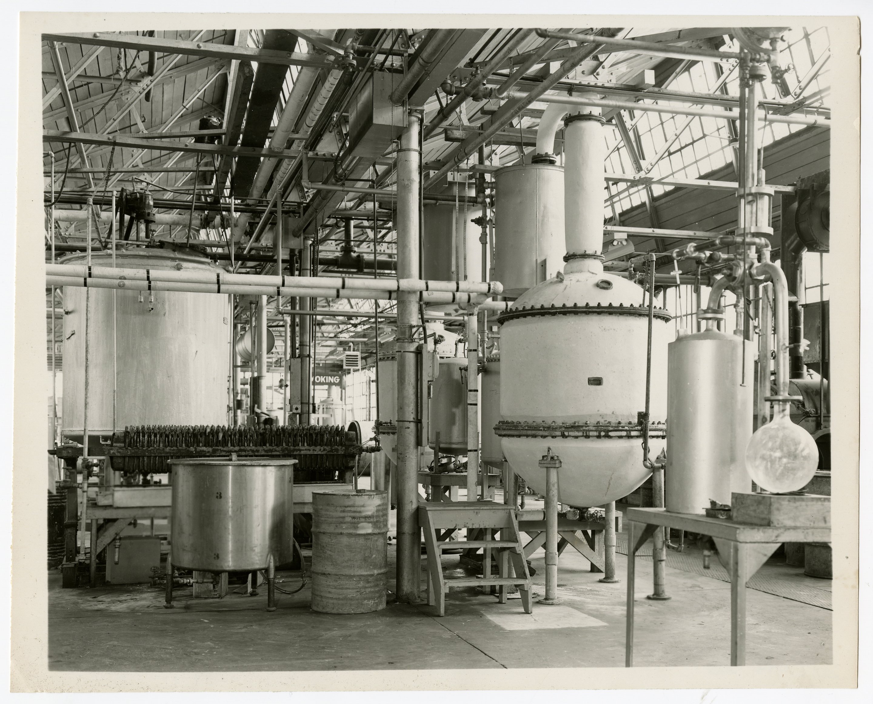 Norda Essential Oil and Chemical Company. “Vacuum Still,” 1950–1959. Norda Essential Oil and Chemical Company Photograph Collection, Box 1. Science History Institute. Philadelphia. https://digital.sciencehistory.org/works/bn999672v.