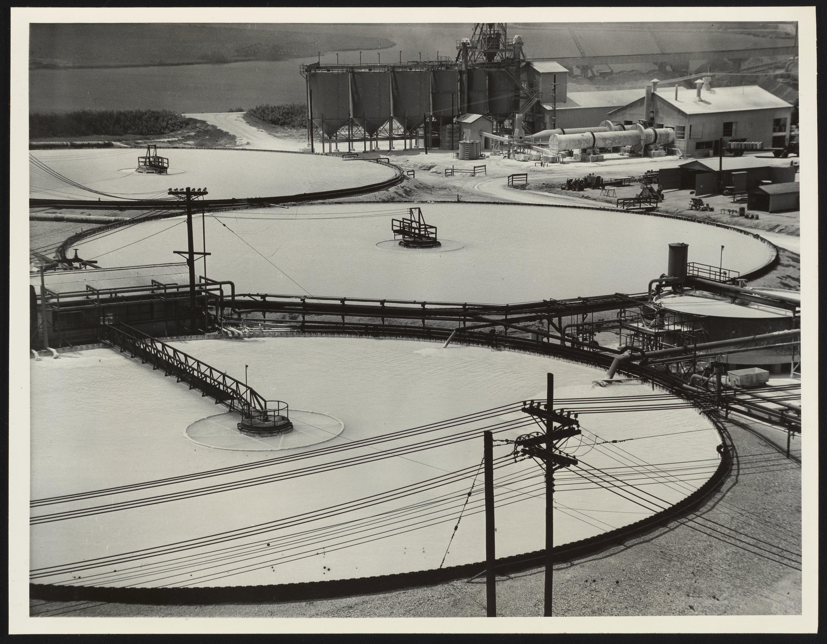 Dow Chemical Company. “Dorr Tanks at Dow Chemical Company Plant,” 1952. Dow Chemical Company Historical Image Collection, Box Oversized Plants 1. Science History Institute. Philadelphia. https://digital.sciencehistory.org/works/bn999722v.