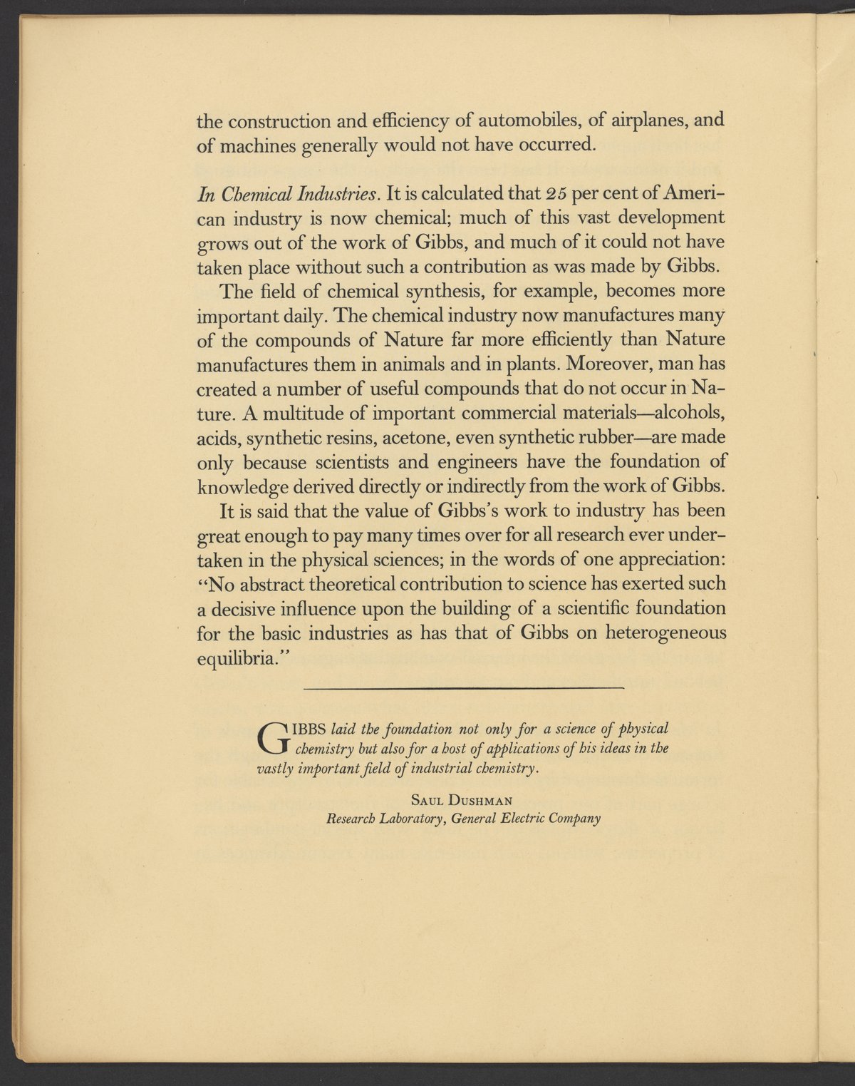 A Professor's Theory and It's Practical Uses: The Work of J. Willard Gibbs & Some Applications to Industry