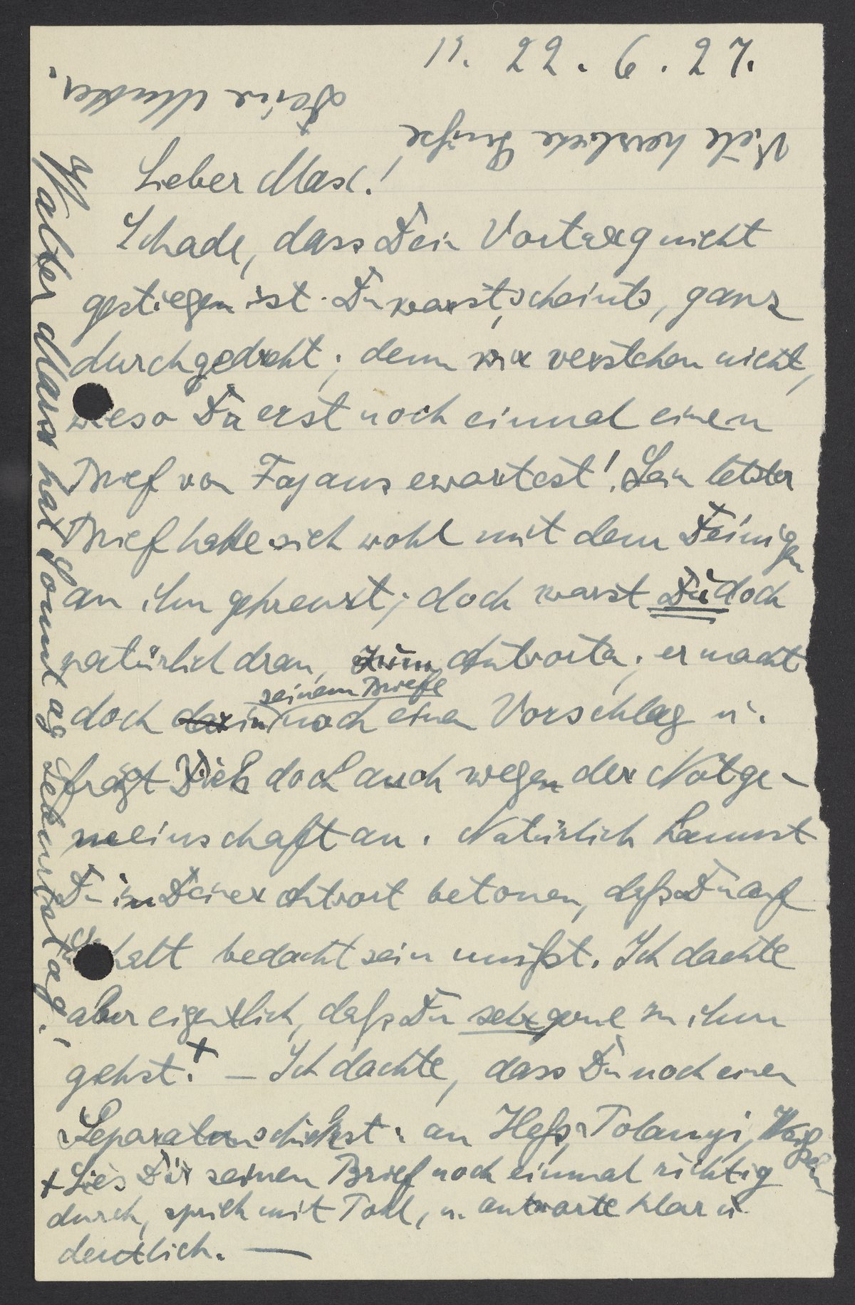 Letter from Rosa Bredig to Max Bredig, June 22, 1927