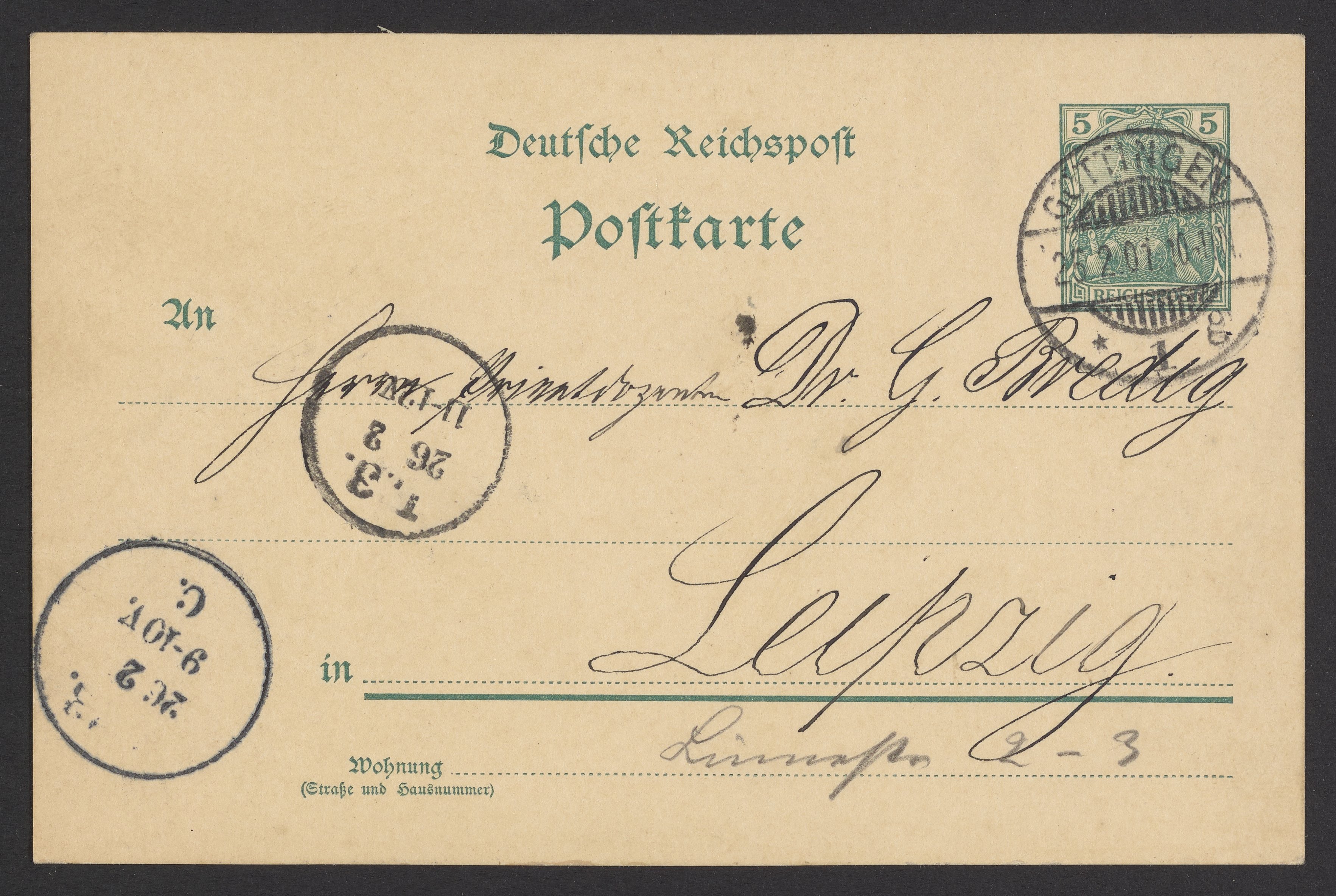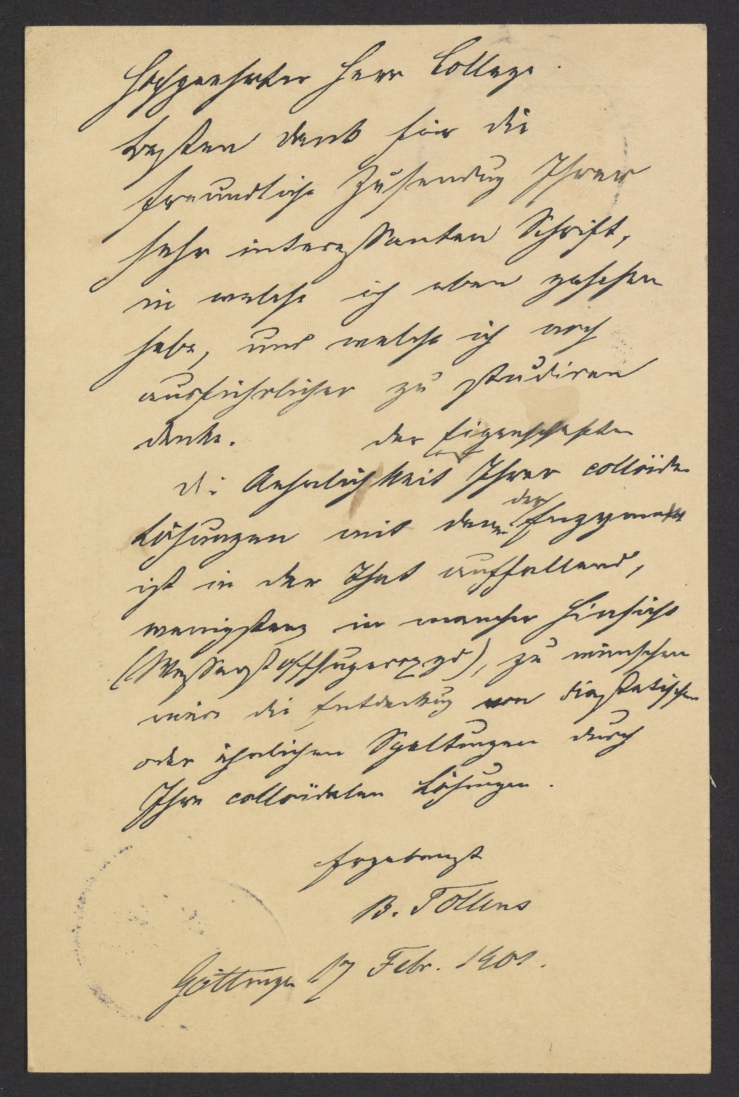 Postcard from Bernhard Tollens to Georg Bredig, February 1901