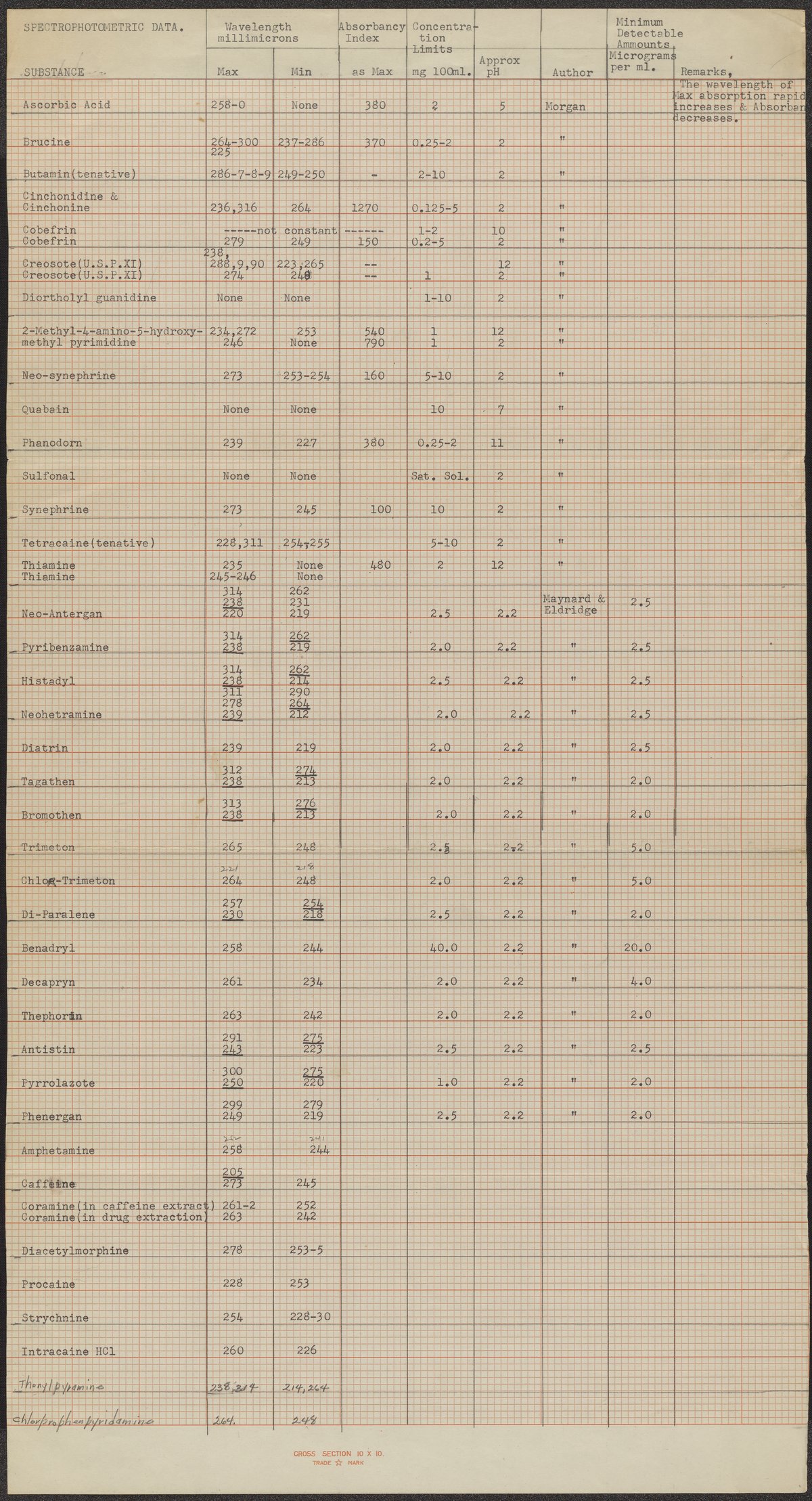 Spectrophotometric data