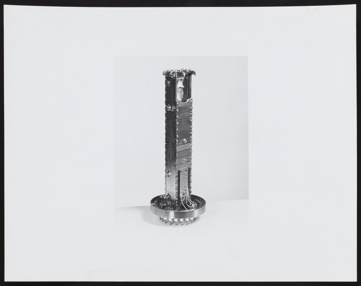 Bendix Corporation. “Ion Source and Model 203-GGA Magnetic Electron Multiplier,” 1958. Photographs from the Bendix Time-of-Flight Mass Spectrometer Collection, Box 3. Science History Institute. Philadelphia. https://digital.sciencehistory.org/works/bv73c108h.