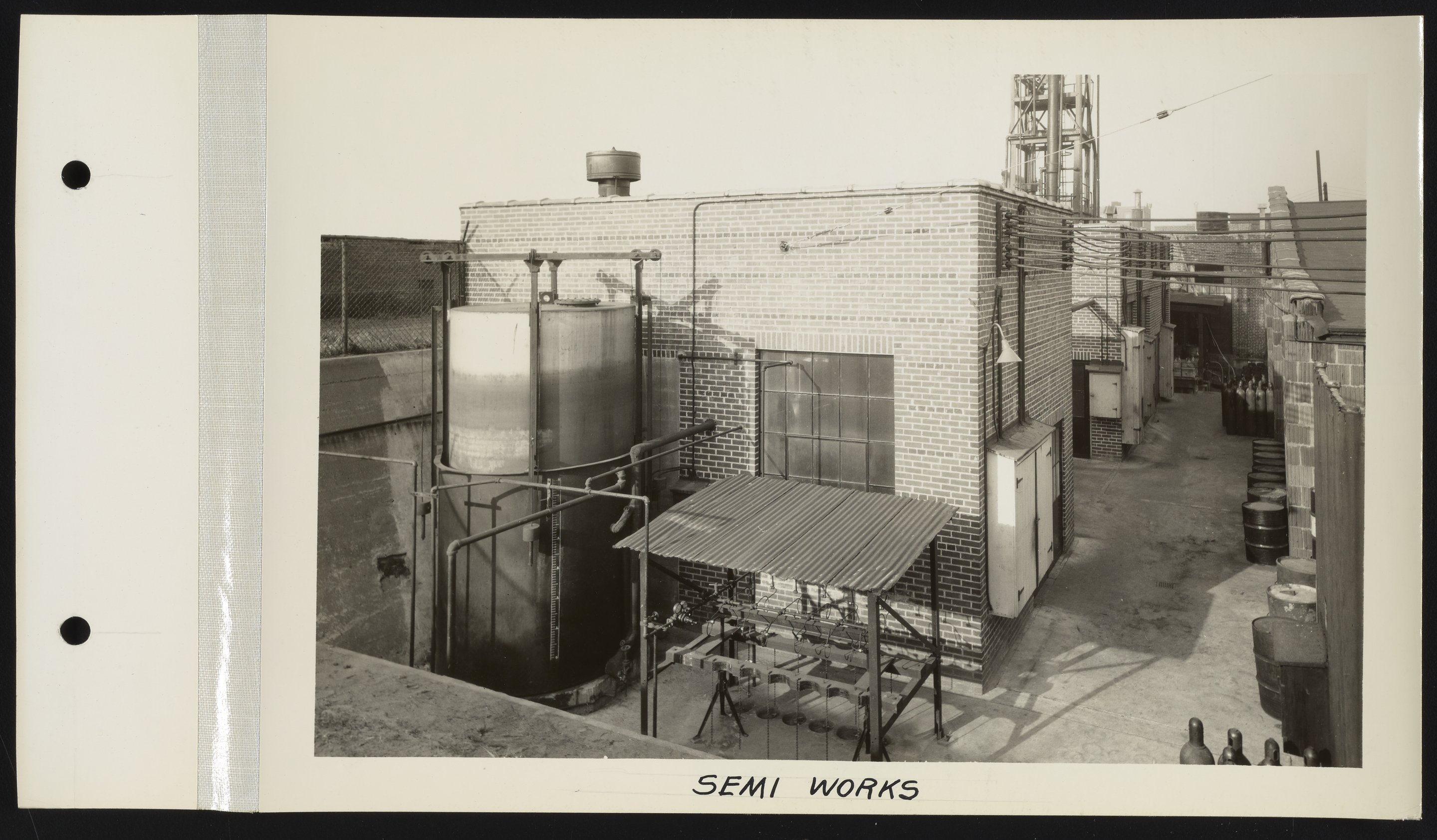 Sliker Photo Service, and Rohm and Haas Company. “Semi-Works at Bridesburg Plant.” Exterior Views of Charles Lennig and Company Plant in Bridesburg, 1931. Rohm & Haas Company Archives, Box 27 (Photographs), Folder 8. Science History Institute. Philadelphia. https://digital.sciencehistory.org/works/bv73c135d.