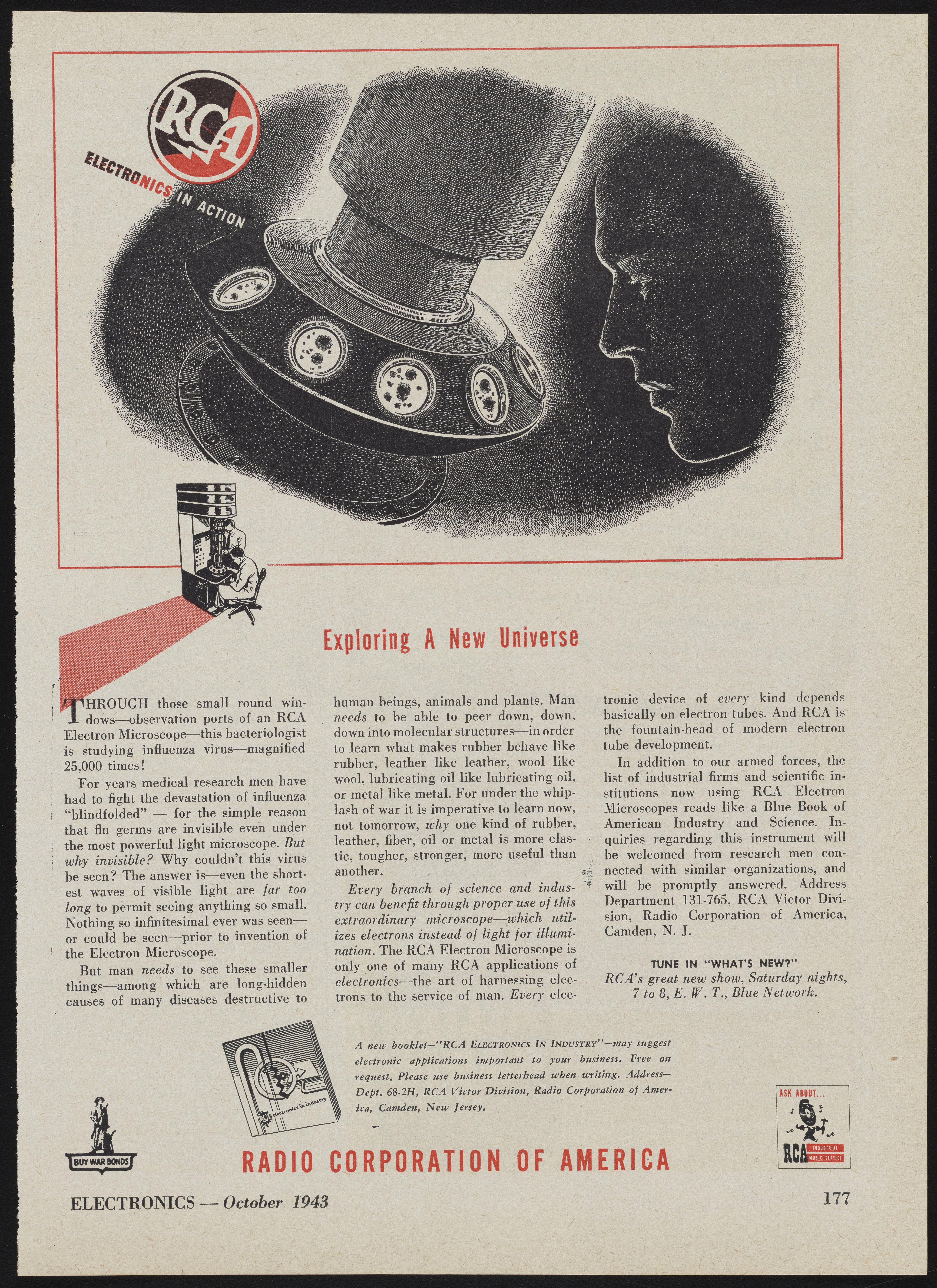 Radio Corporation of America. “Exploring a New Universe,” 1943. Science History Institute. Philadelphia. https://digital.sciencehistory.org/works/bv73c167p.
