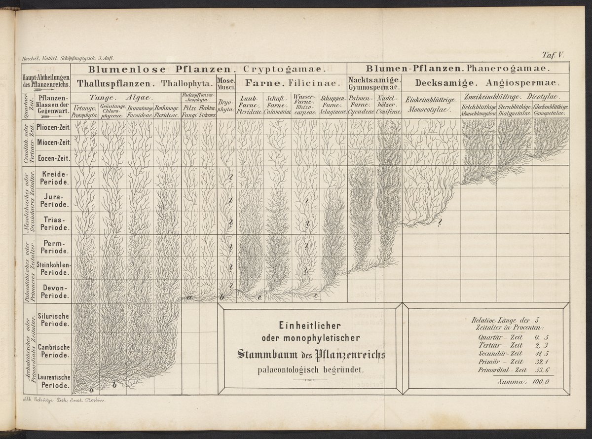 Haeckel, Ernst. “Paleontological Tree of the Vegetable Kingdom.” Natürliche Schöpfungsgeschichte: Gemeinverständliche Wissenschaftliche Vorträge Über Die Entwickelungslehre. Berlin, Germany: G. Reimer, 1872. https://digital.sciencehistory.org/works/bw6vfyc.