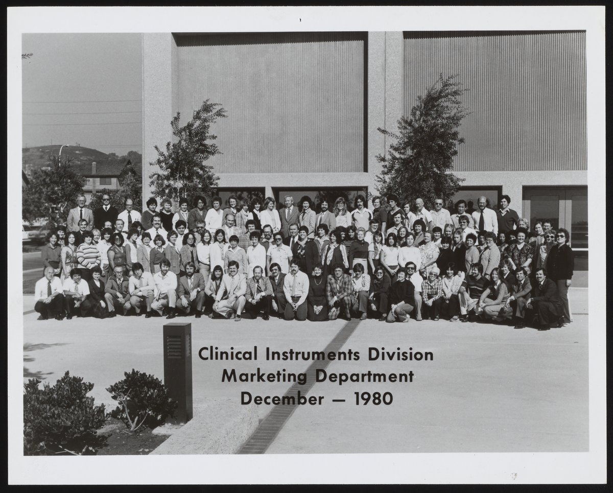“Clinical Instruments Division, Marketing Department, December - 1980 Group Photo,” December 1980. Beckman Historical Collection, Box 82. Science History Institute. Philadelphia. https://digital.sciencehistory.org/works/bz60cw46s.