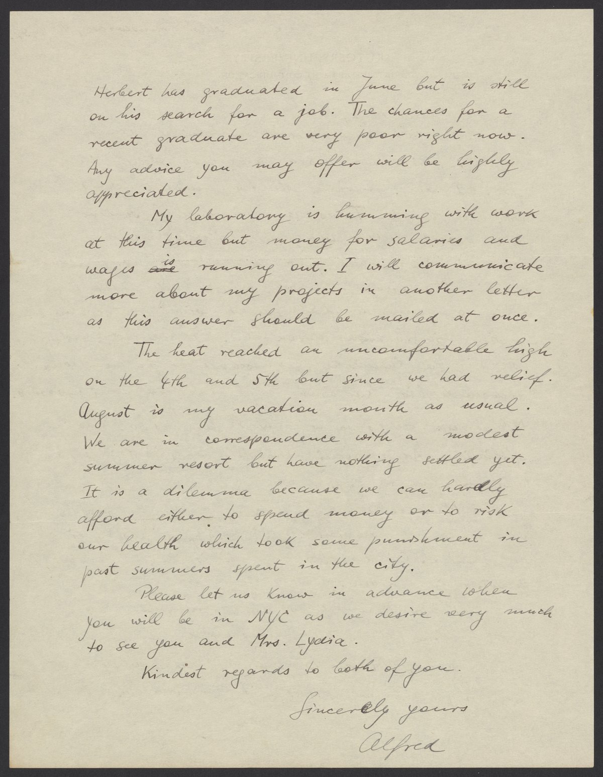 Letter from Alfred Reis to Max Bredig, July 8, 1949