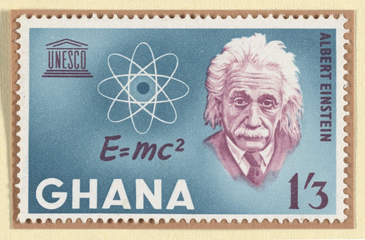 “Ghanaian Postage Stamp Commemorating Albert Einstein.” Ghana, n.d. Witco Stamp Collection, Box 2. Science History Institute. Philadelphia. https://digital.sciencehistory.org/works/c534fp03s.