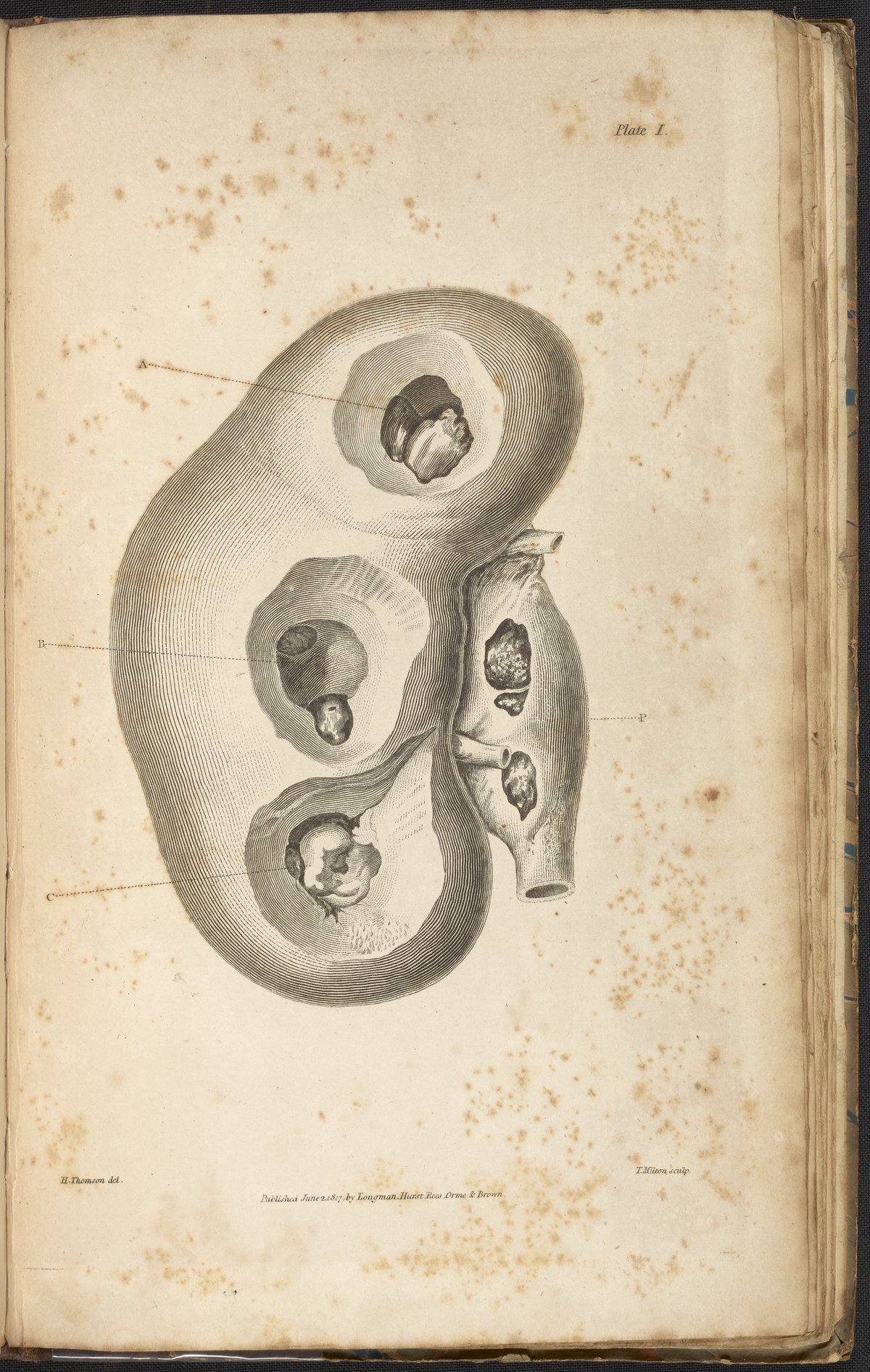 Marcet, Alexander. “An Essay on the Chemical History and Medical Treatment of Calculous Disorders.” London, England: Longman, Hurst, Rees, Orme, and Brown, 1819. R128.7 .M373 1819. Science History Institute. Philadelphia. https://digital.sciencehistory.org/works/c5ri8xu.