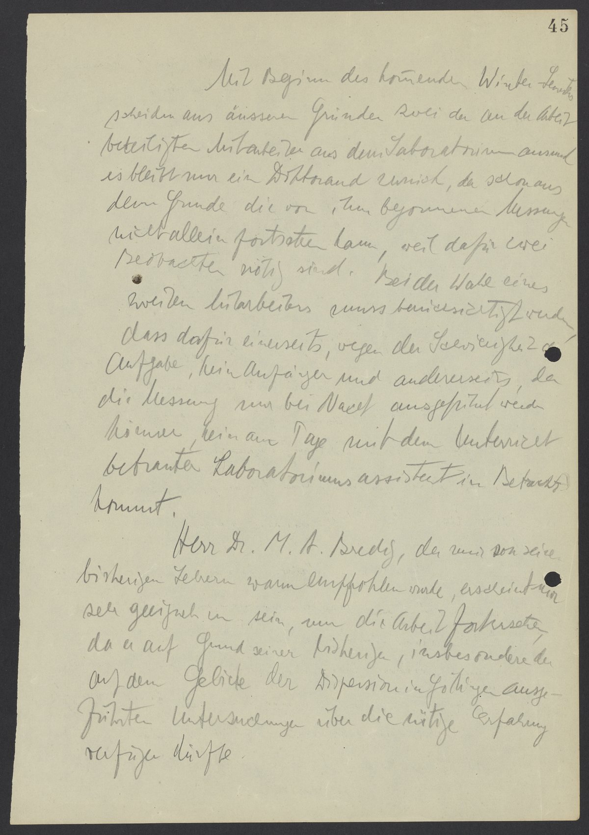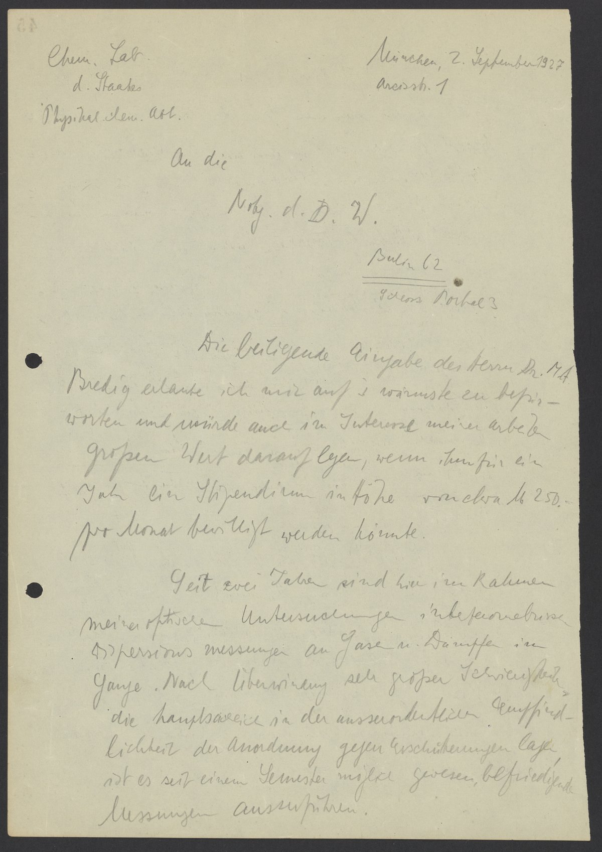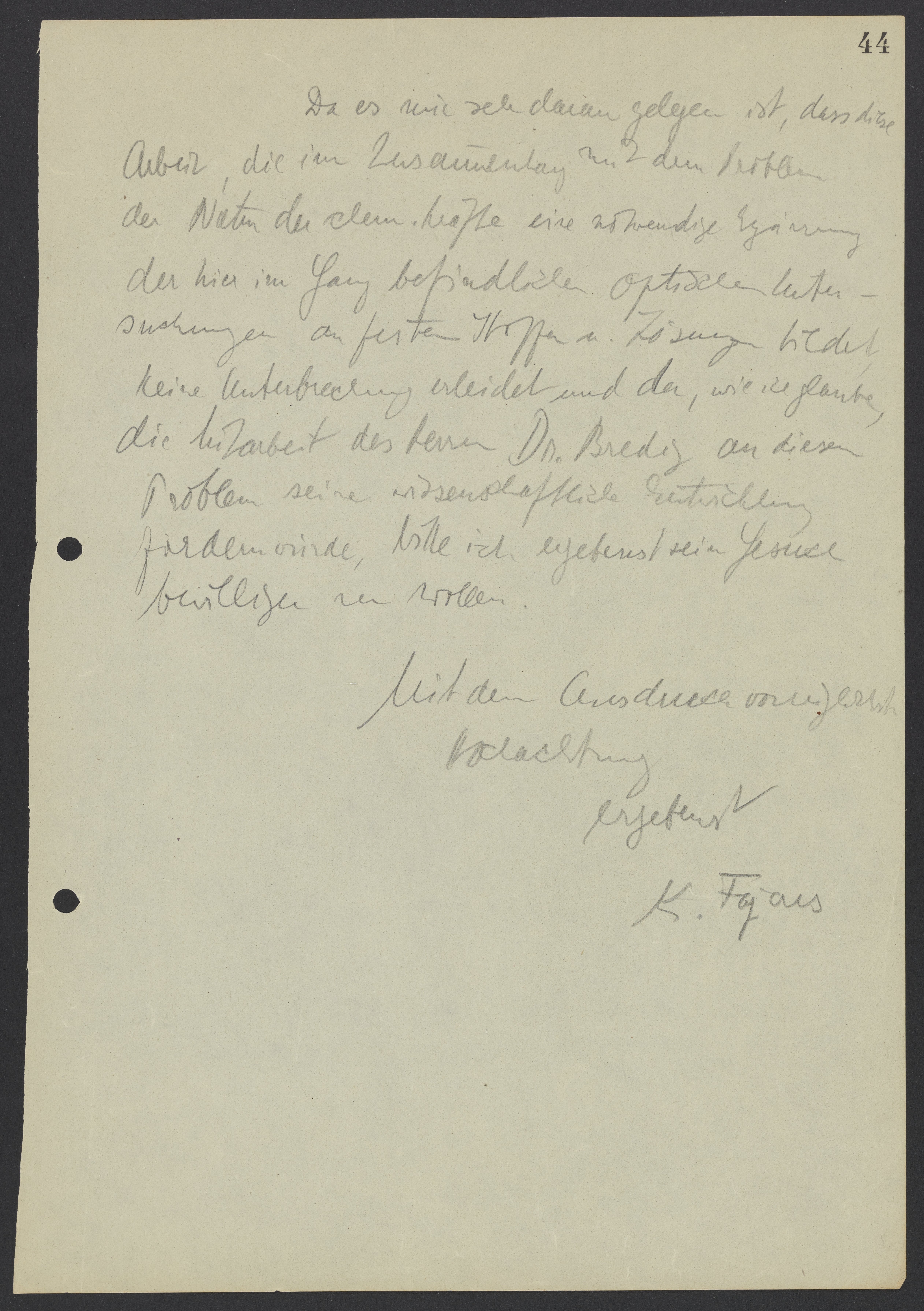 Recommendation Letter from Kasimir Fajans for Max Bredig, September 2, 1927