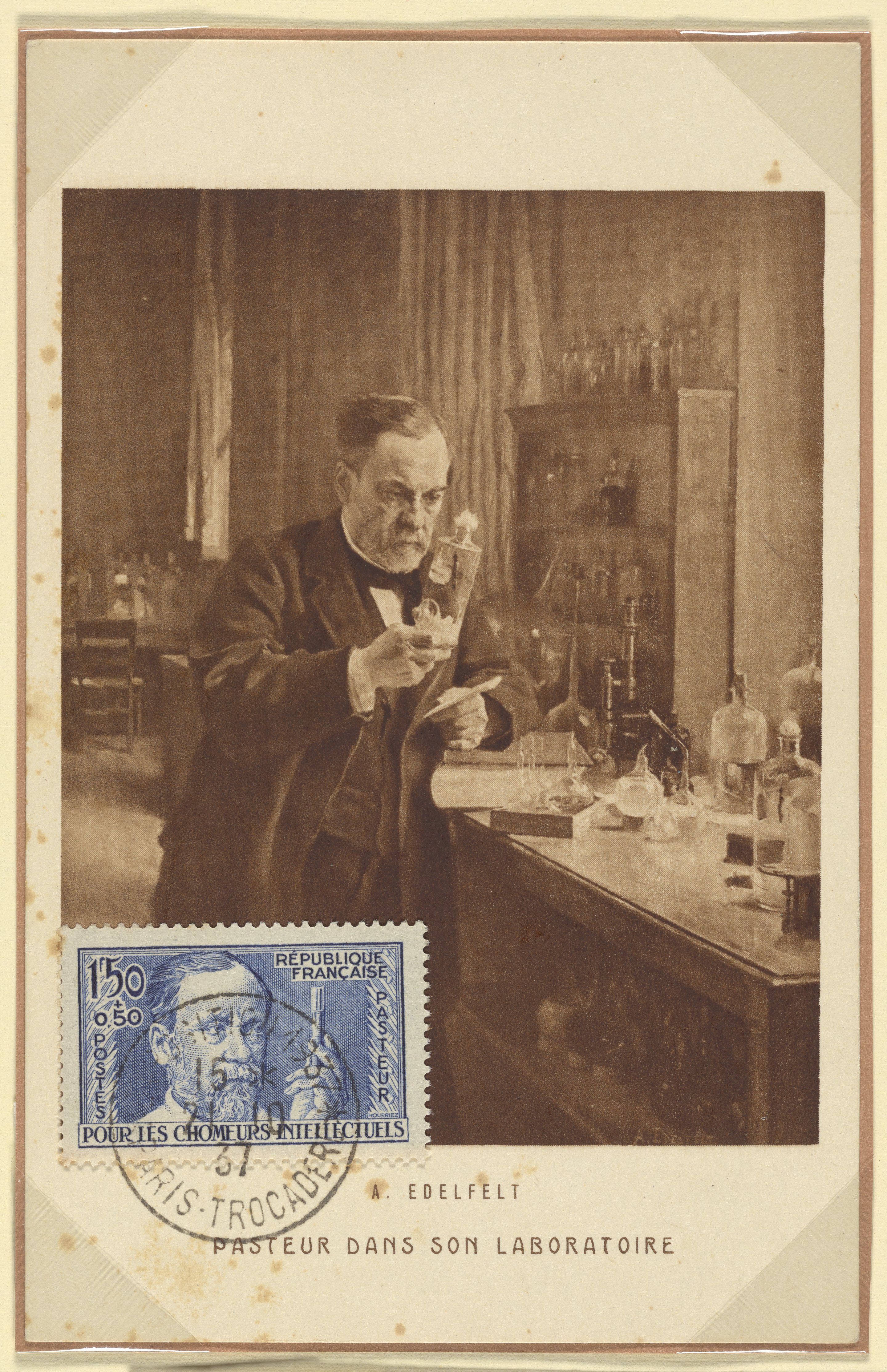 Hourriez, Georges. “Postcard and French Postage Stamp Commemorating Louis Pasteur.” France, n.d. Witco Stamp Collection, Box 2. Science History Institute. Philadelphia. https://digital.sciencehistory.org/works/c821gk01g.