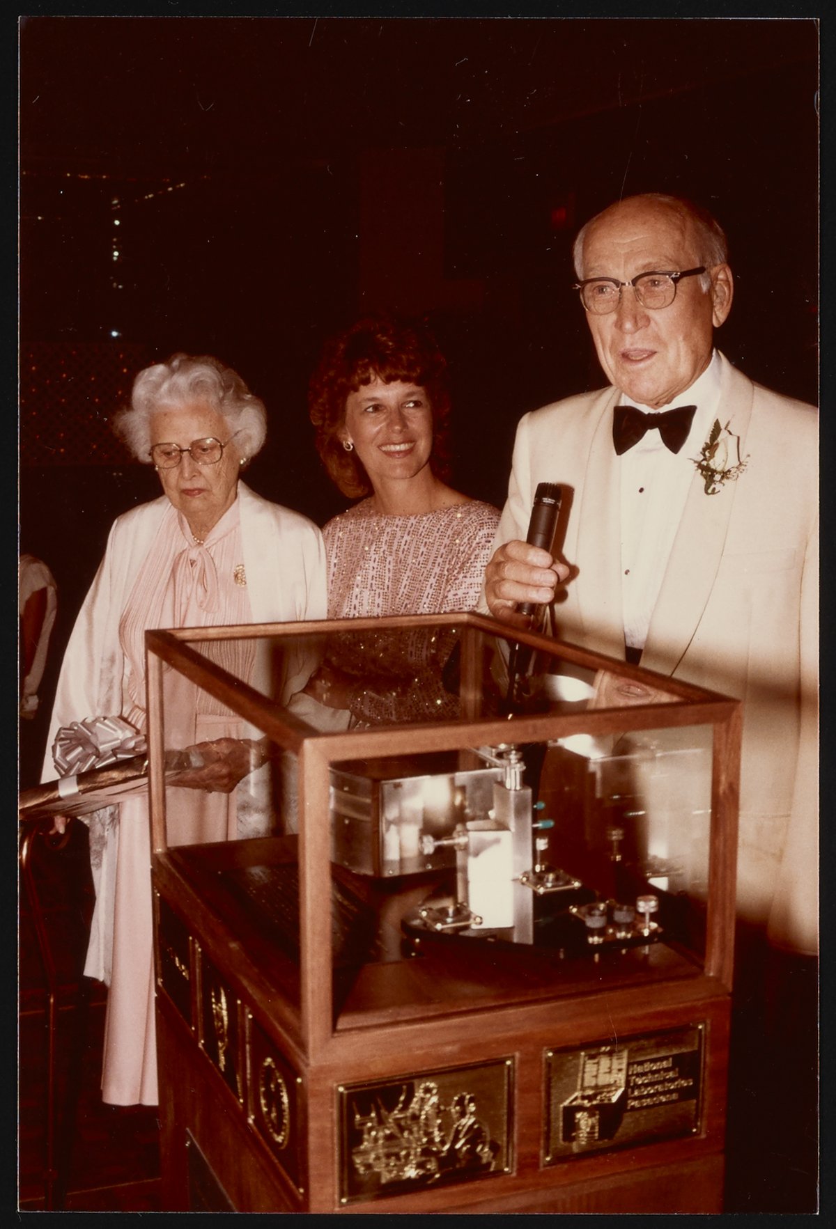 Small JPG1200 x 979px — 76.3 KBLarge JPG2880 x 2350px — 345 KBFull-sized JPG3188 x 2601px — 412 KBOriginal fileTIFF — 3188 x 2601px — 23.8 MBThis selection of photographs depicts Arnold and Mabel Beckman at their home and attending various events. Some are dated, and all appear to fall into the period between the 1940s and 1985, when the couple was presented with a crystal bowl in honor of their sixtieth wedding anniversary. Many photographs bear volume or identifying numbers of unclear significance; most are unattributed. In addition to the Beckmans, Frank Camarda, Howard Teeter, and Jan Horn are identified.