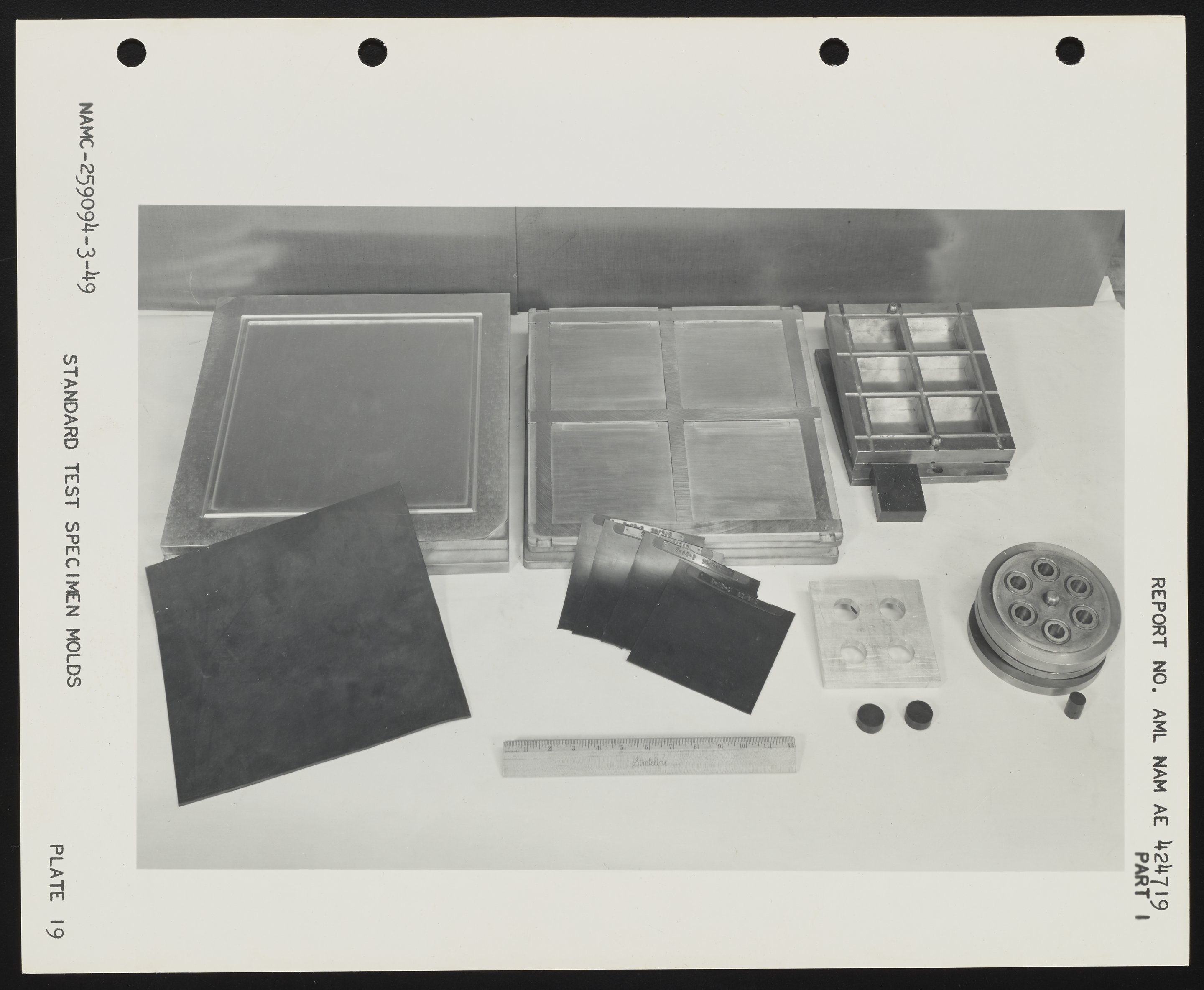 Naval Air Experimental Station, and United States. Navy. “Standard Test Specimen Molds,” circa 1949. Photographs from the Papers of J. Hartley Bowen, Box 1. Science History Institute. Philadelphia. https://digital.sciencehistory.org/works/cf95jb48w.