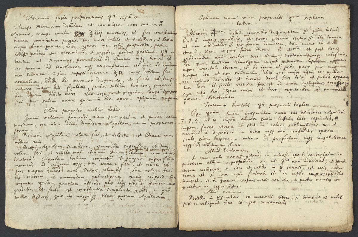 Small JPG1200 x 1543px — 423 KBLarge JPG2880 x 3703px — 2.3 MBFull-sized JPG4136 x 5318px — 4.4 MBOriginal fileTIFF — 4136 x 5318px — 63.0 MBThe manuscript—"On the Preparation of the [Sophick] Mercury for the [Philosophers'] stone by means of the stellate regulus of Mars [i.e. iron] and Luna [i.e. silver] from the Manuscripts of the American Philosopher"—was first published in Latin in 1678 under the title Experimenta de praeparatione mercurii sophici ad lapidem per regulum martis antimoniatum stellatumque et lunam ex manuscripto philosophici Americani, alias Æyrenæi Philalethes, natu Angli, habitatione cosmopolitæ. This manuscript is a copy in Isaac Newton's hand of an earlier manuscript by George Starkey under his pen name Eireneaus Philalethes, and not a copy of the printed text, so therefore may predate the printed version. Newton's comments in square brackets either expand abbreviations in the other manuscript or correct it.