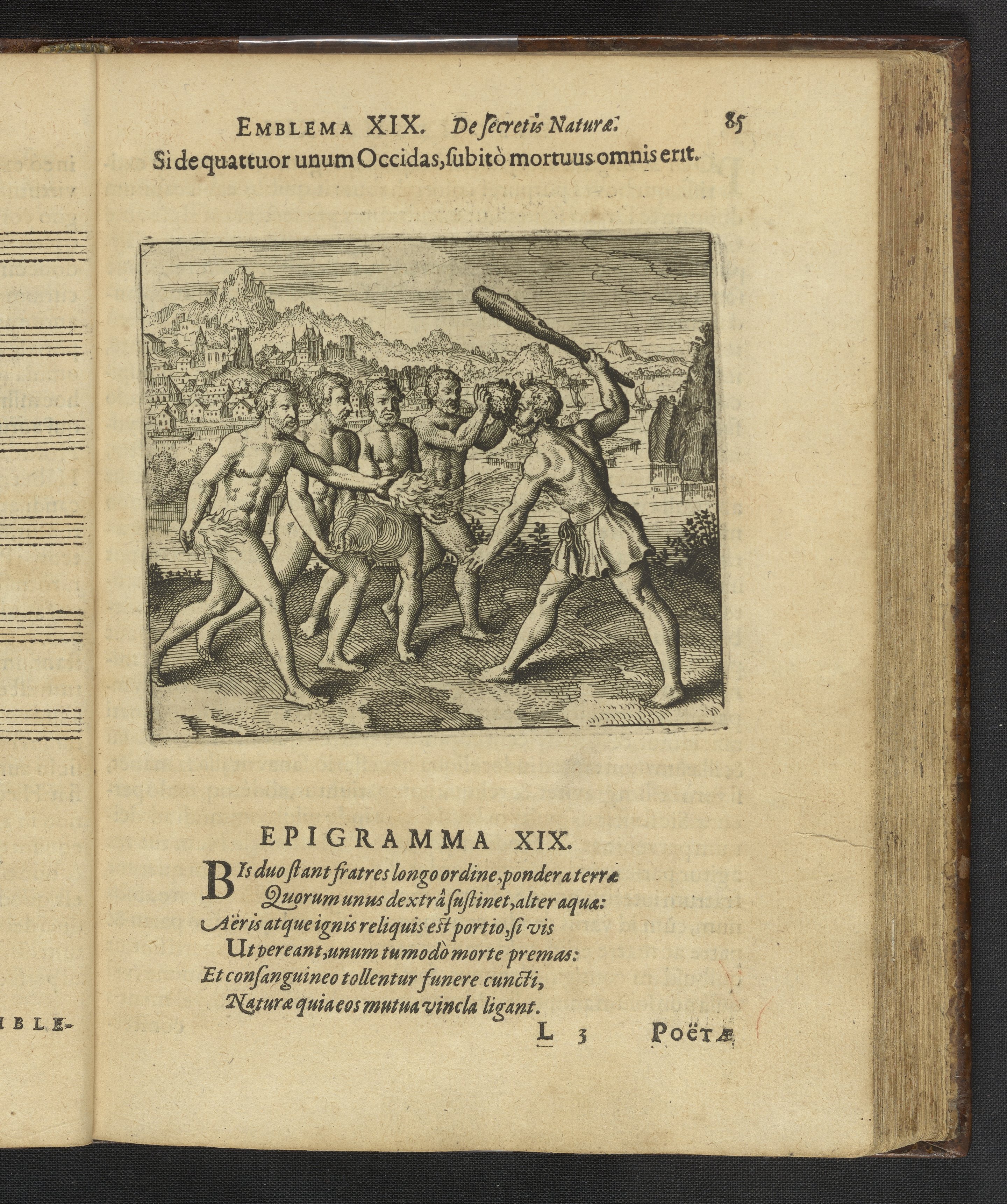 Emblema XIX. Si de quattuor unum Occidas, subitò mortuus omnis erit.