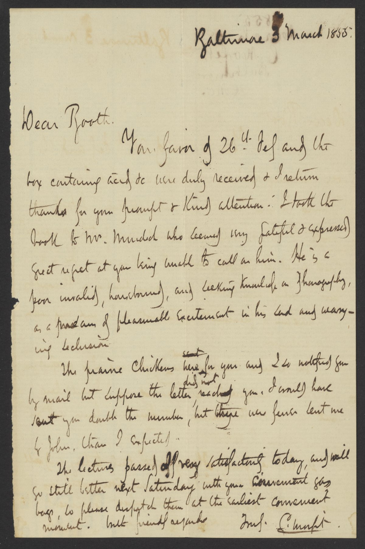 Letter from Campbell Morfit to James Curtis Booth, March 3, 1855