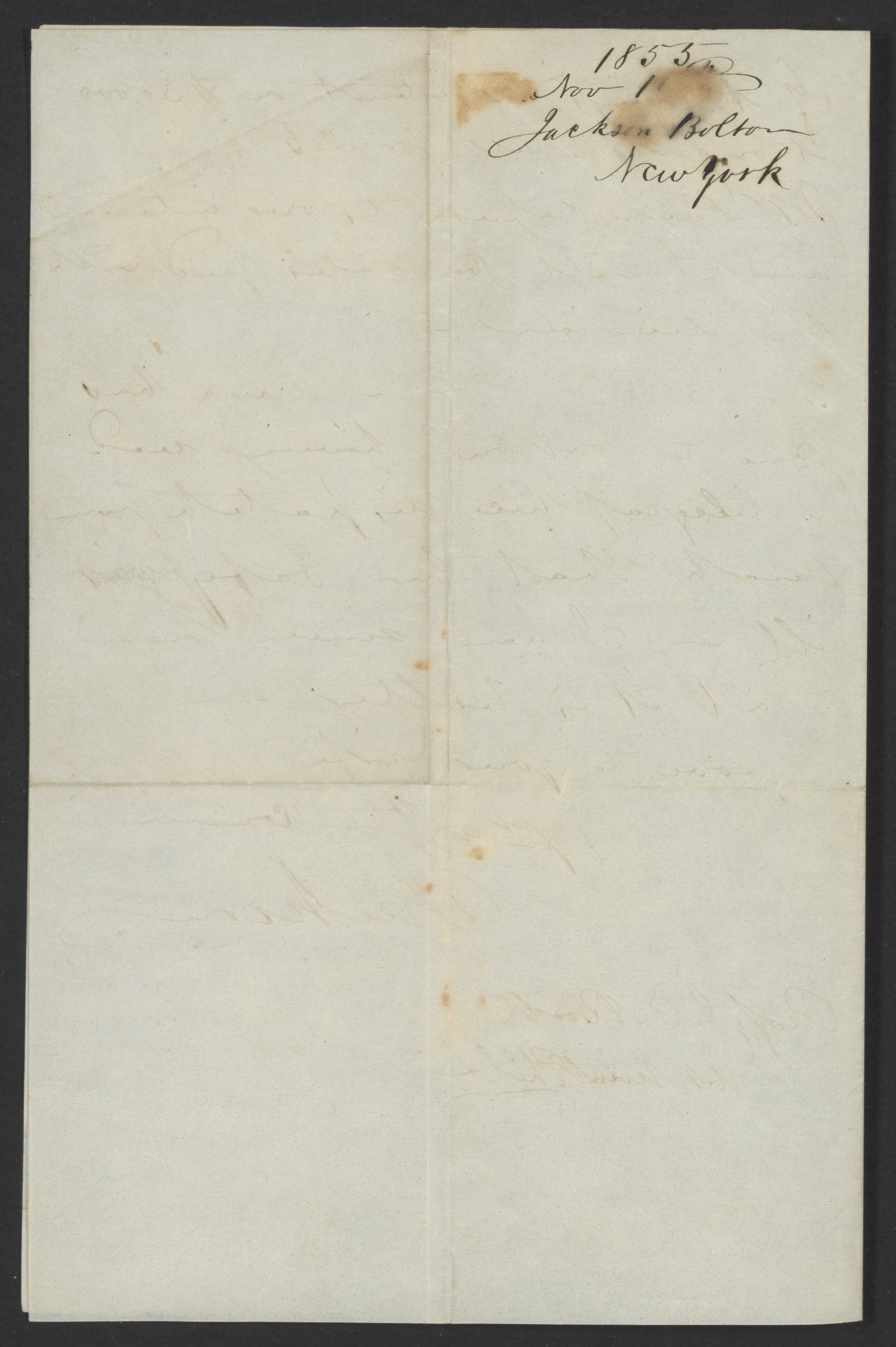 Letter from Jackson Bolton to James Curtis Booth, November 16, 1855