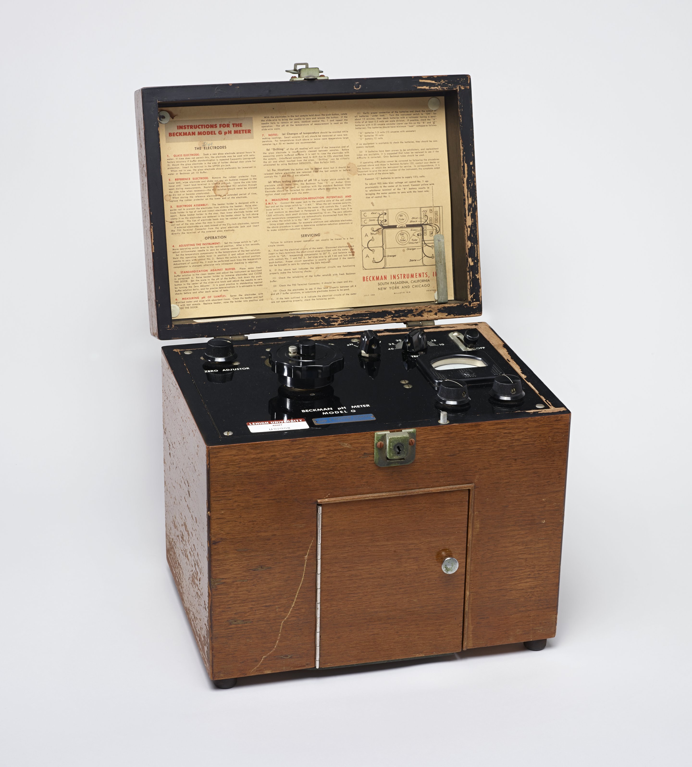 Science History Institute. Beckman Model G Glass Electrode PH Meter. Photograph, 2016. Science History Institute. Philadelphia. https://digital.sciencehistory.org/works/cn69m4242.