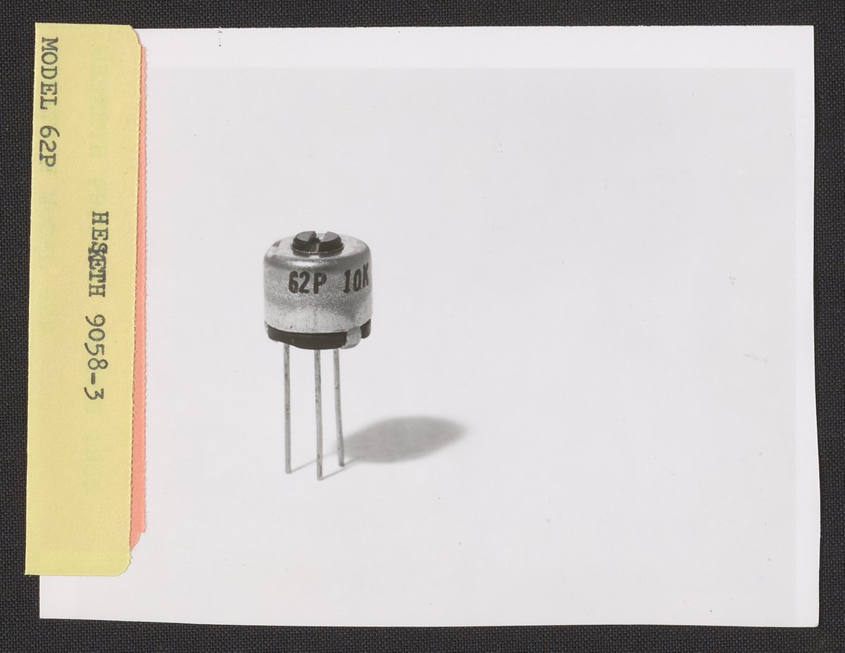 Hesketh, Dean D. “Beckman Model 62P Potentiometer,” 1950–1969. Beckman Historical Collection, Box 85. Science History Institute. Philadelphia. https://digital.sciencehistory.org/works/cn69m448n.