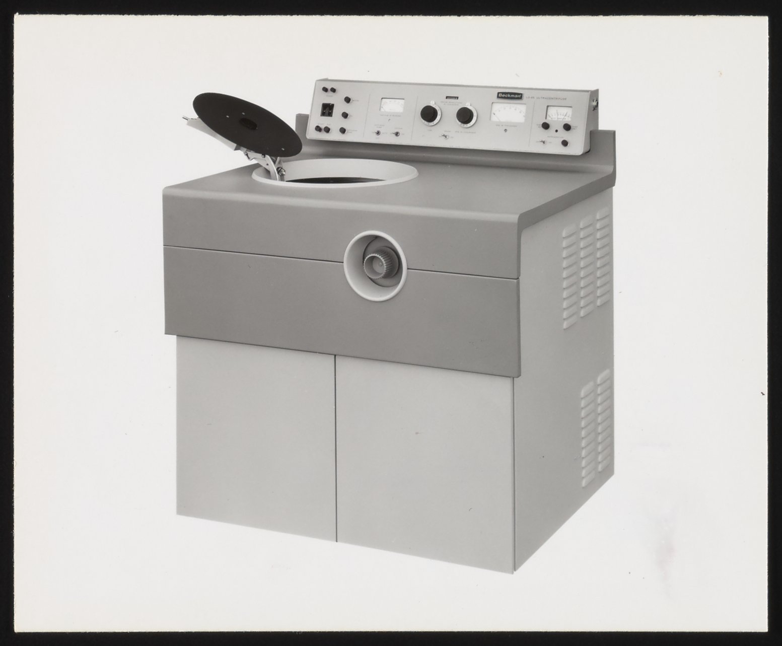 Illig, Russell. “Beckman Model L2 and Model L2-65 Ultracentrifuges,” circa 1967. Beckman Historical Collection, Box 59, Folder 110. Science History Institute. Philadelphia. https://digital.sciencehistory.org/works/cn69m463r.