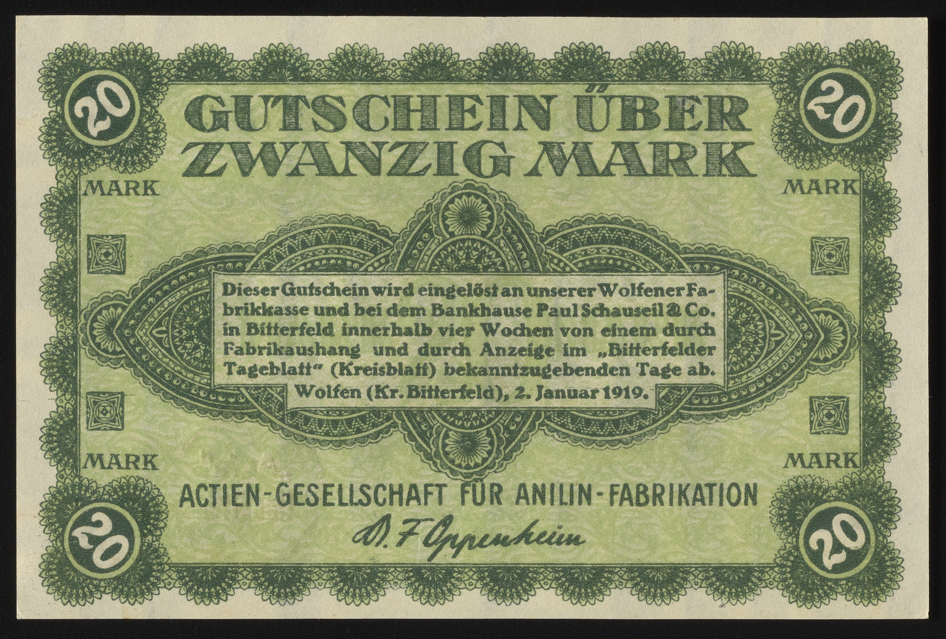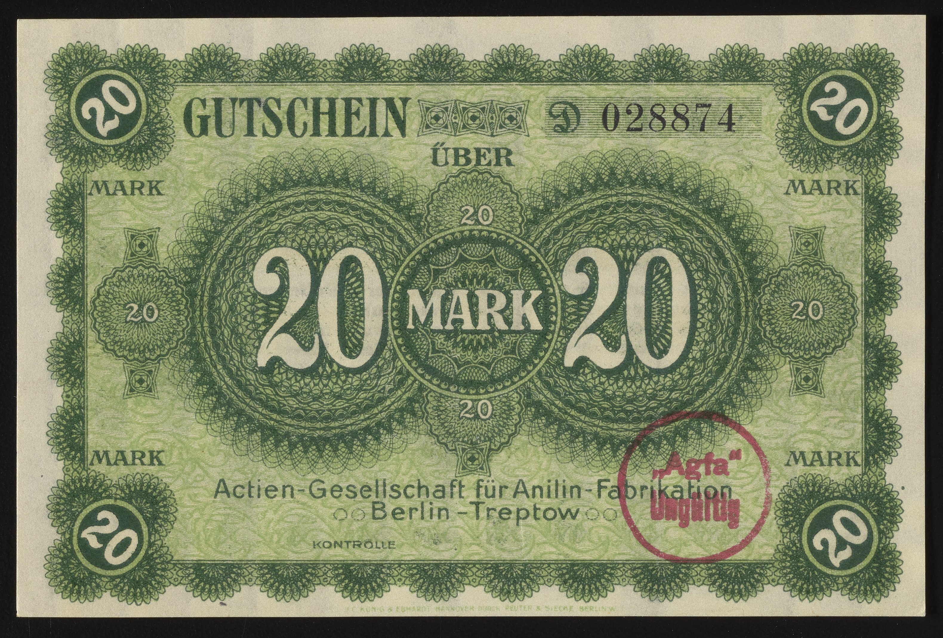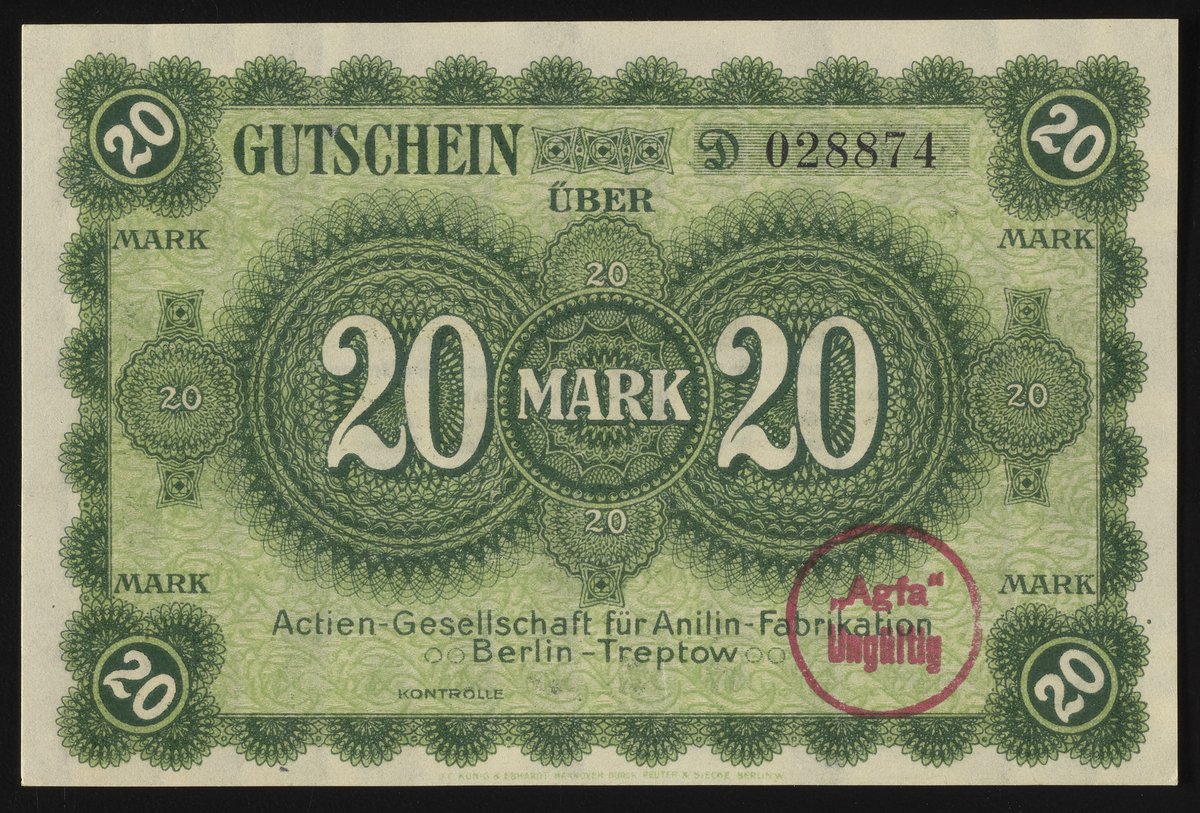 Aktiengesellschaft für Anilinfabrikation twenty Mark Gutschein