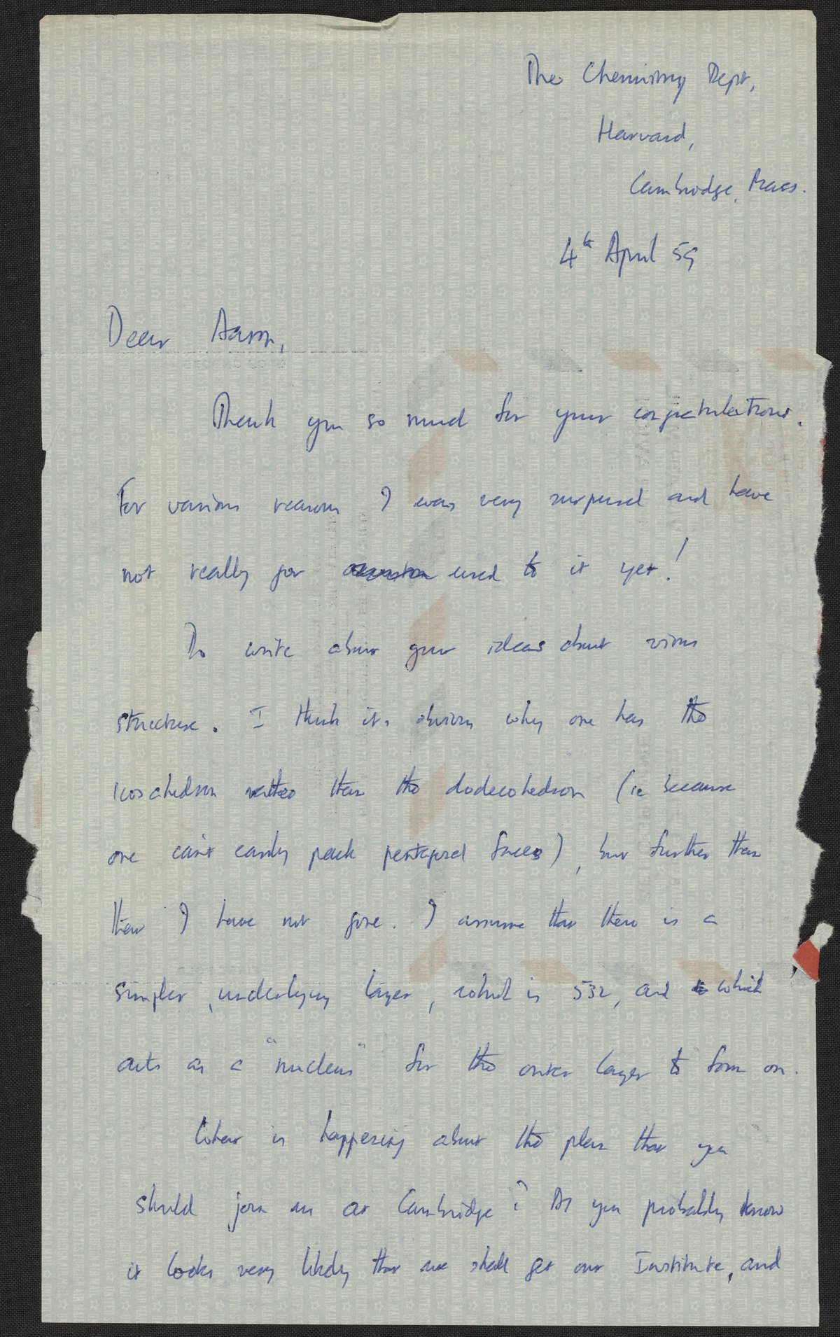 Letter from Francis Crick to Aaron Klug, April 4, 1959